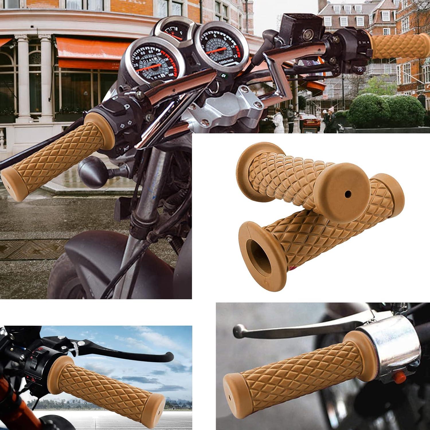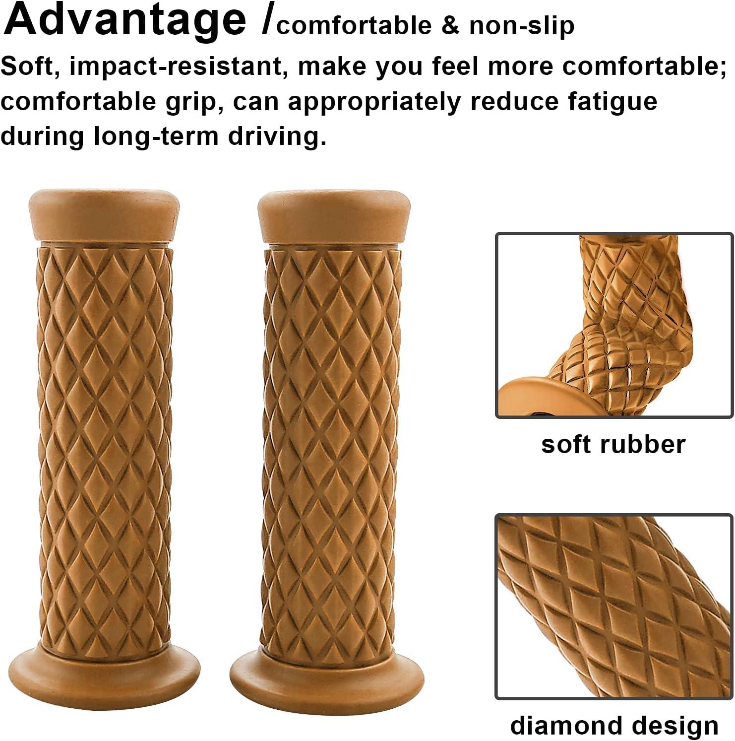 Motorcycle Non Slip Retro Rubber Handlebar Comfortable Handlebar 7/8" 22mm 1" 24mm Rubber Handle Grips(Yellow)