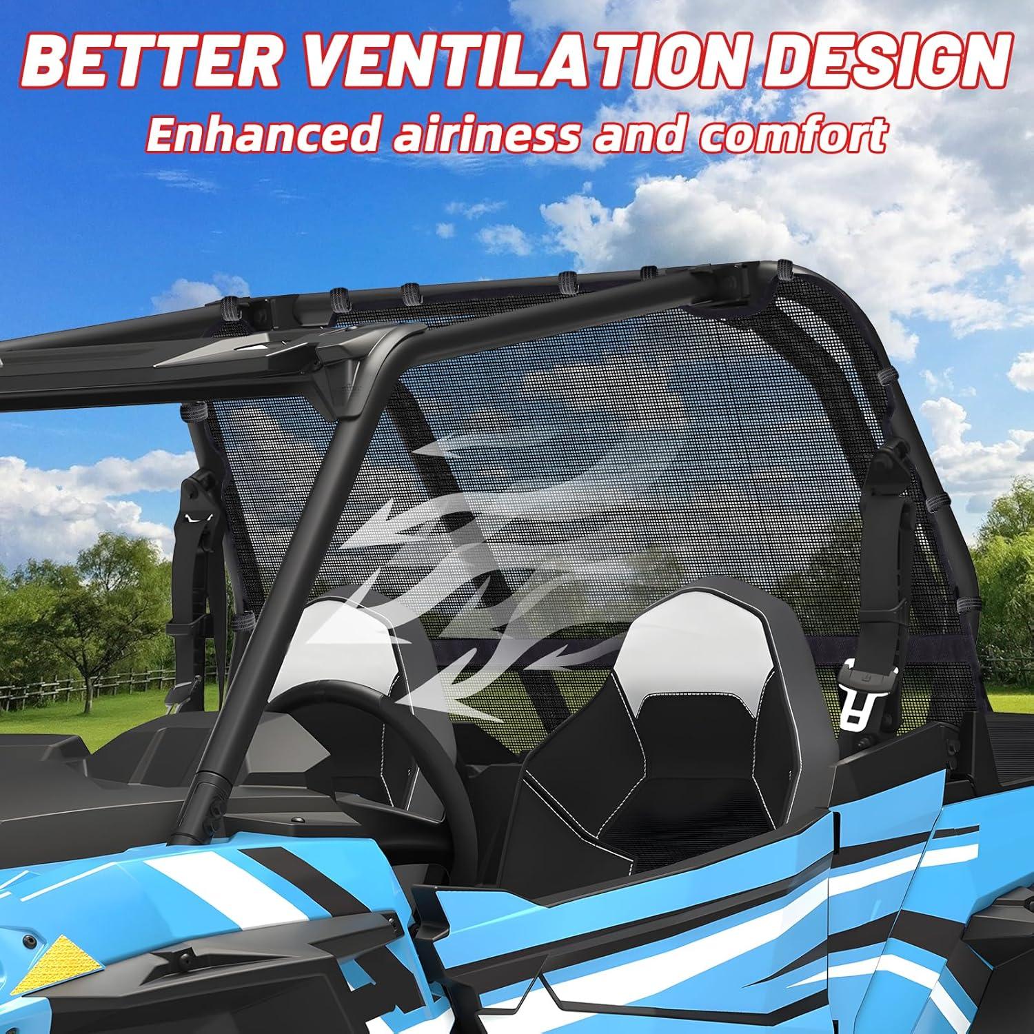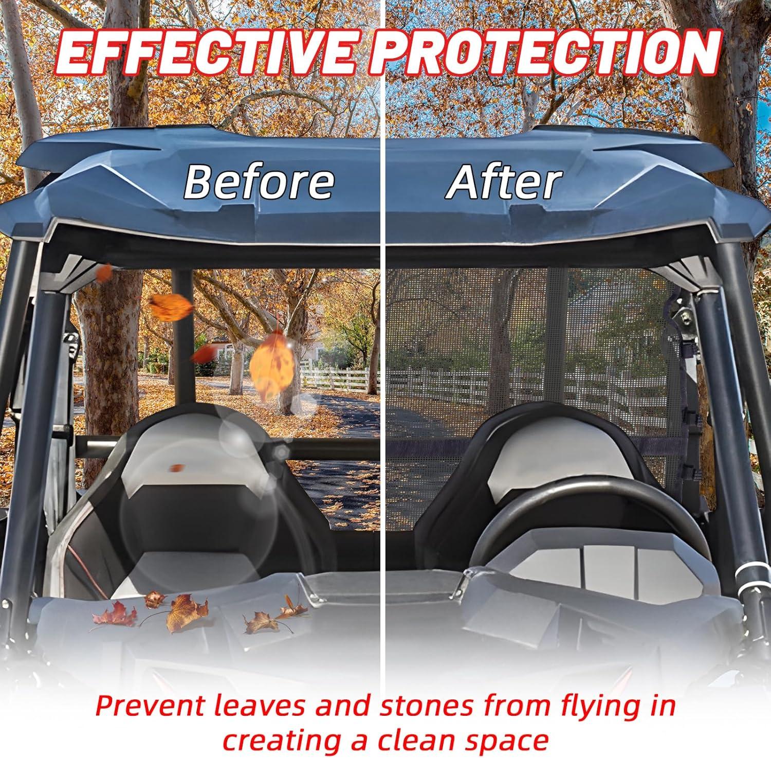 Upgraded Material: The xp 1000 back window net mesh is made of prenium PVC, UV-resistant, corrosion-resistant, strong toughness, and durable and not easy to be torn. effectively blocks sun glare. Protect your skin and car seats