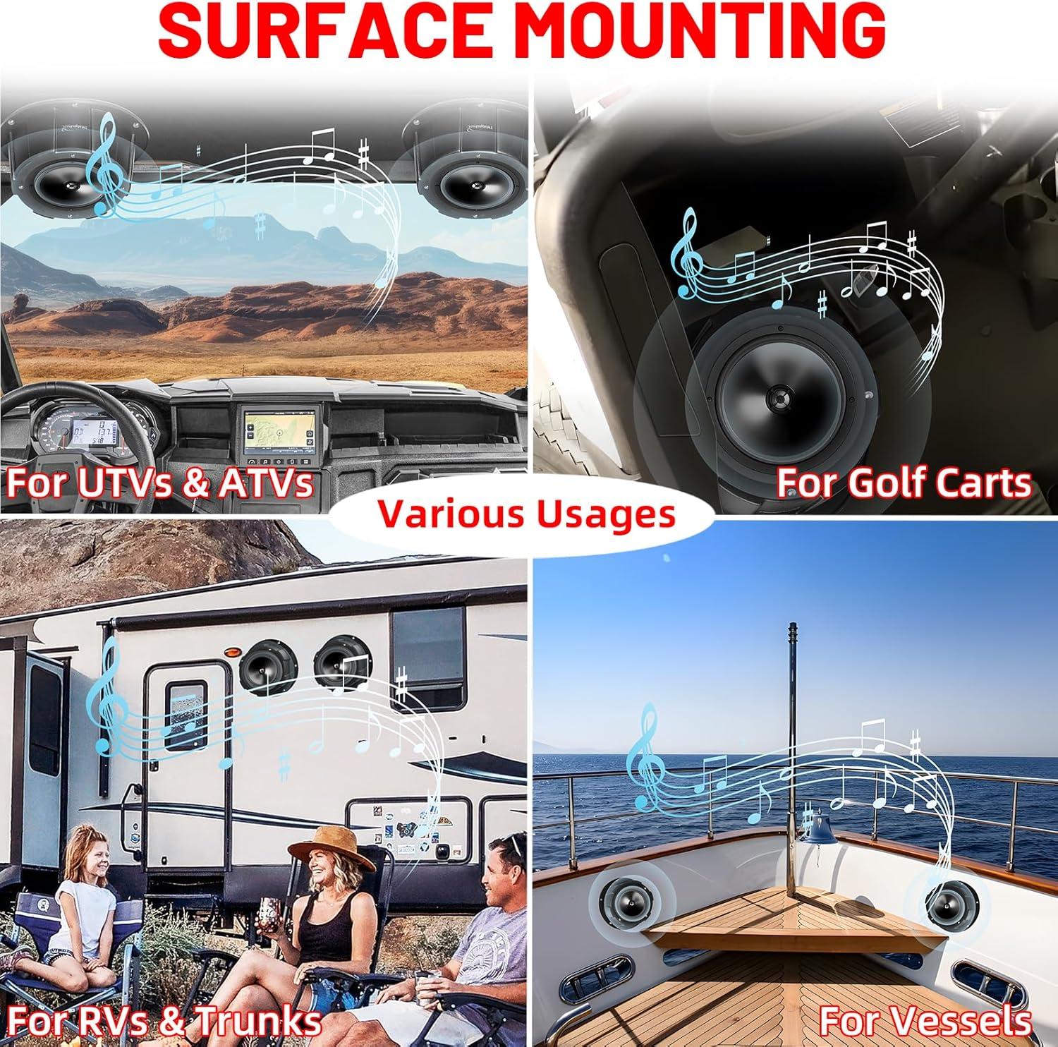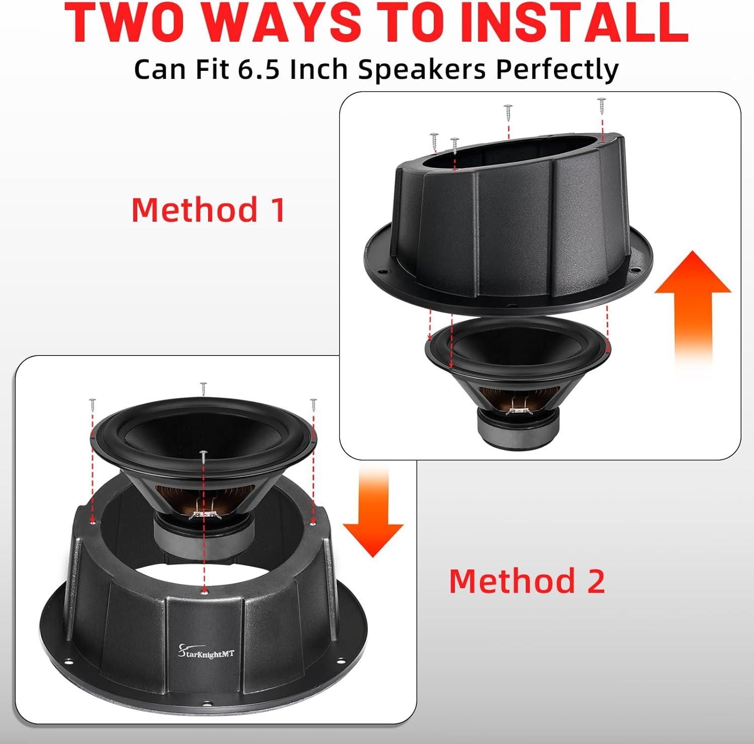 Design For 6.5″ Speakers: This 6.5-inch Speaker Mount Pods is installed by surface mounting, which has enough depth and width to fit your 6.5-inch speakers, and you can use it on your RVs, trunks, trailers, boats, cars, UTVs, golf carts, jeeps, and any surfaces such as door panel