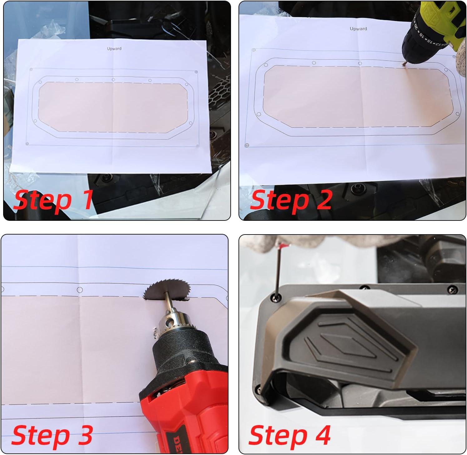 Clear Manual – Less Worries: In every package, there will be 2 windshield vents & 2 vent back panels, 2 cutting templates, 1 pack of 14 screws, and 1 screwdriver for you and you just need to clean up the installation position and install the vents easily by following several steps in the manual and the guide template of windshield cutting
