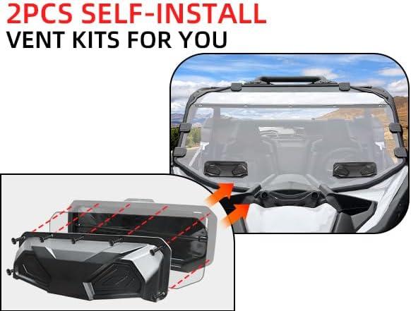 Universal Fitments: This front UTV windshield vents kit is only for polycarbonate windshields, hard roofs (NOT FOR ACRYLIC AND GLASS WINDSHIELD), more than choosing a new vented windshield, you can install the plastic vent kits wherever you want on the windshield you now have and easily adjust the vent open degree to control the wind flow, please note that you need to have your polycarbonate windshield cut while installing the vents