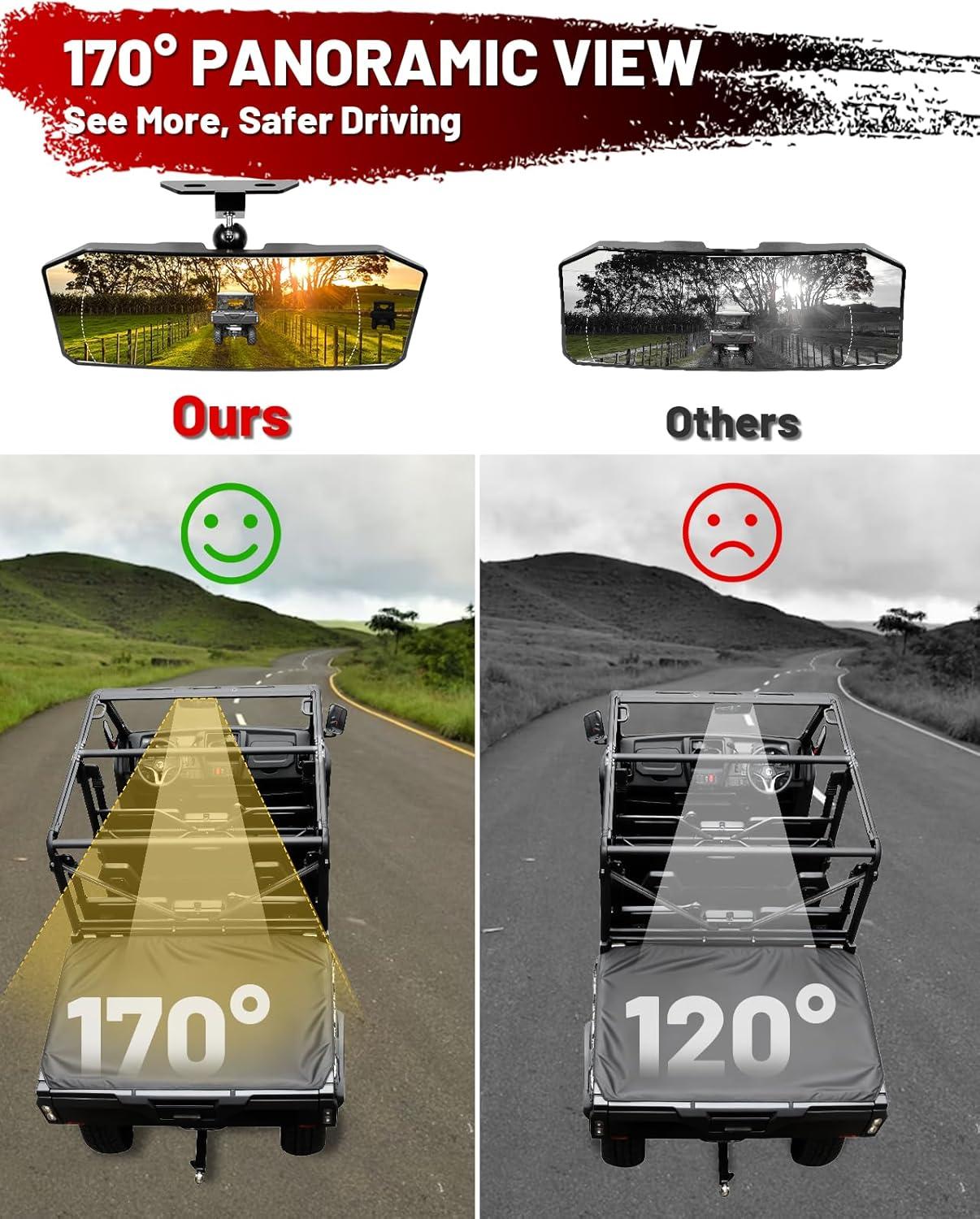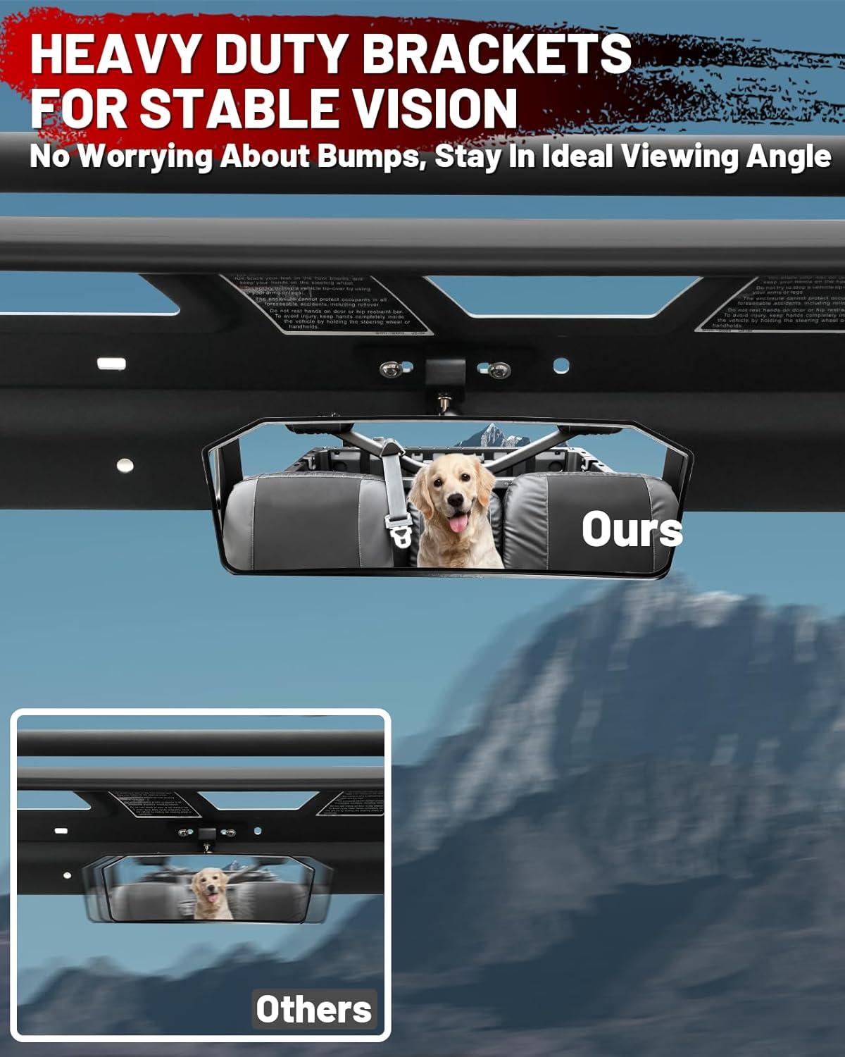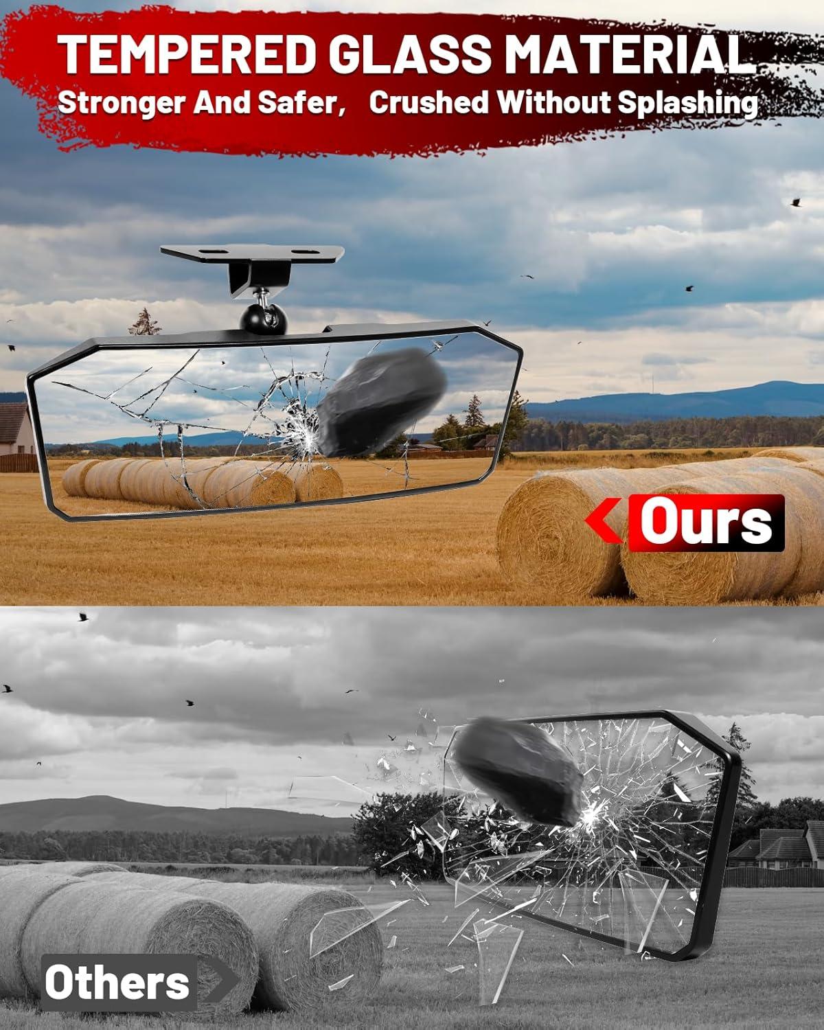 Flexible Customization: Tackle any terrain with the mirror's adjustable design of a 180-degree vertical flip and 240-degree horizontal swivel. This adjustable rear view mirror adapts to the driver's height and terrain angles, eliminating blind spots during off-road adventures.