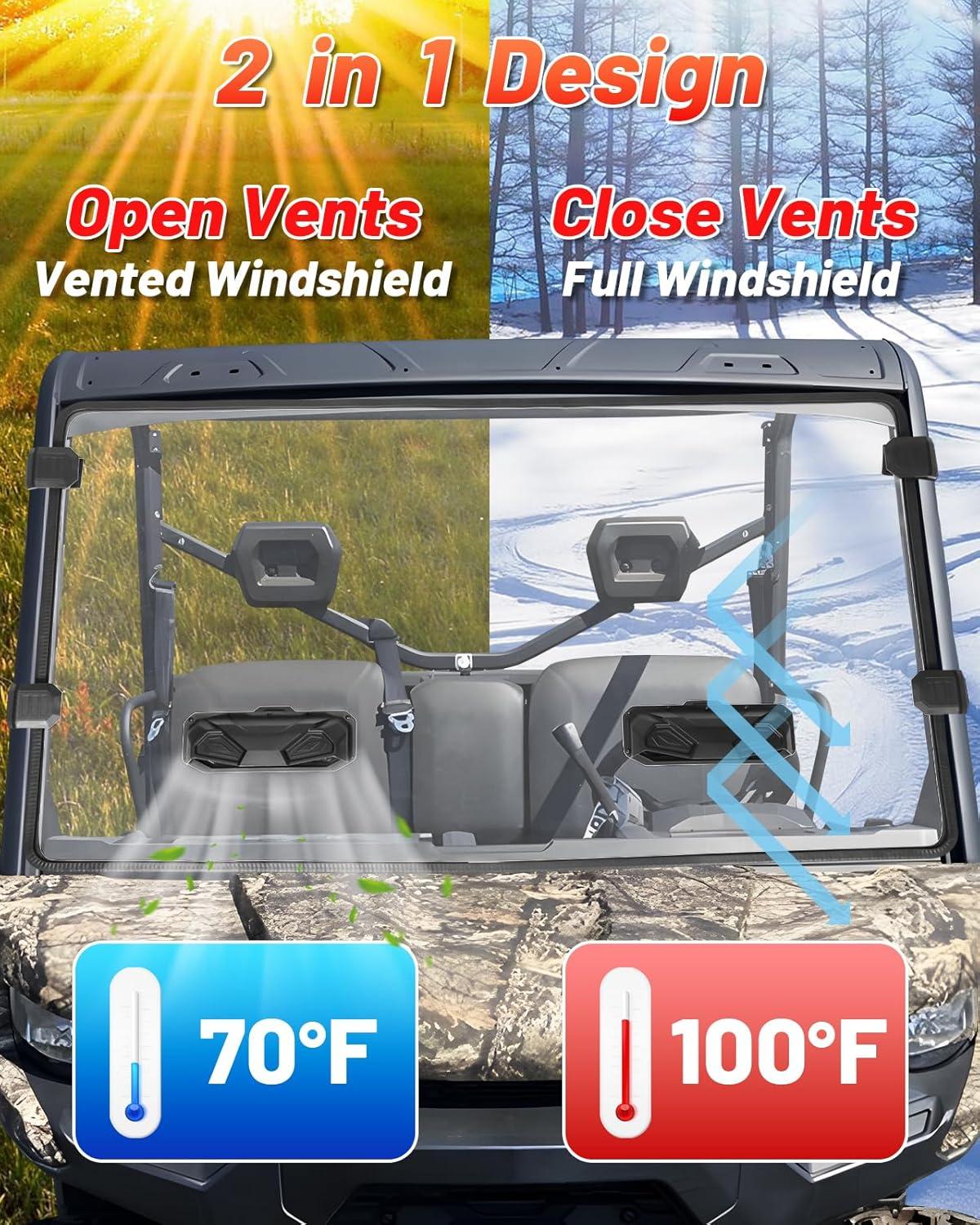 VENTED DESIGN: The defender full windshield is designed with two adjustable vents for airflow, it combines the advantage of full windshield and half windshield, maintaining ventilation while providing full protection, you will start more comfortable adventure with it