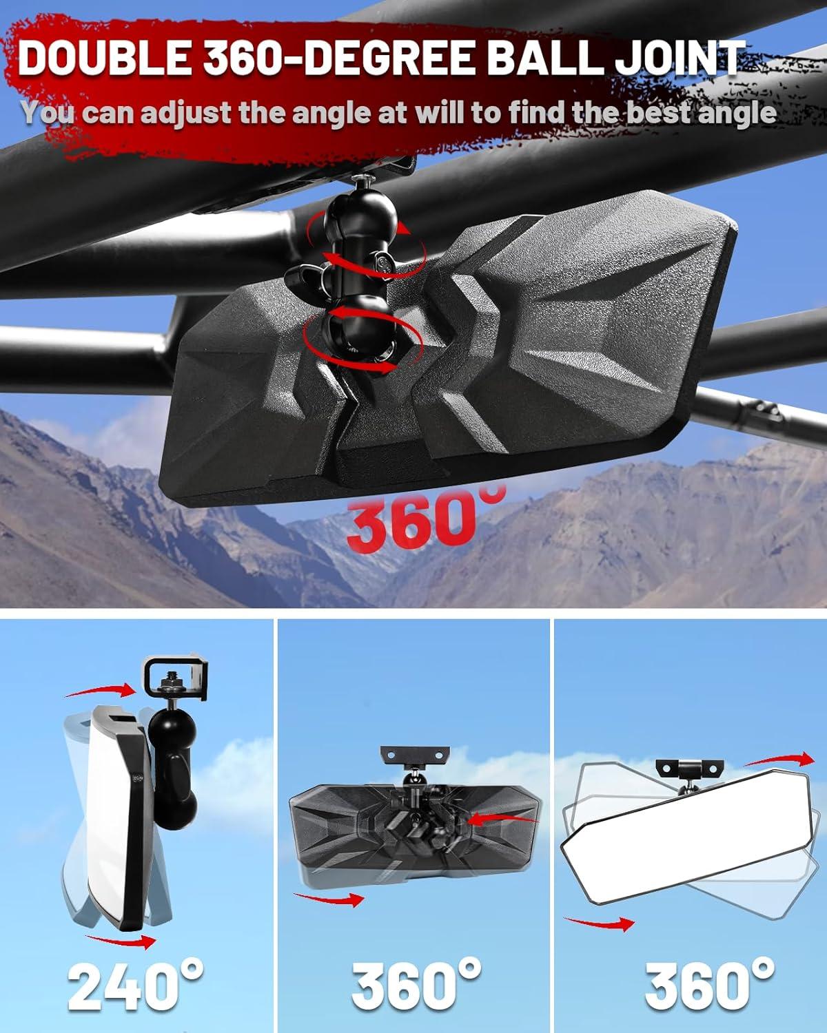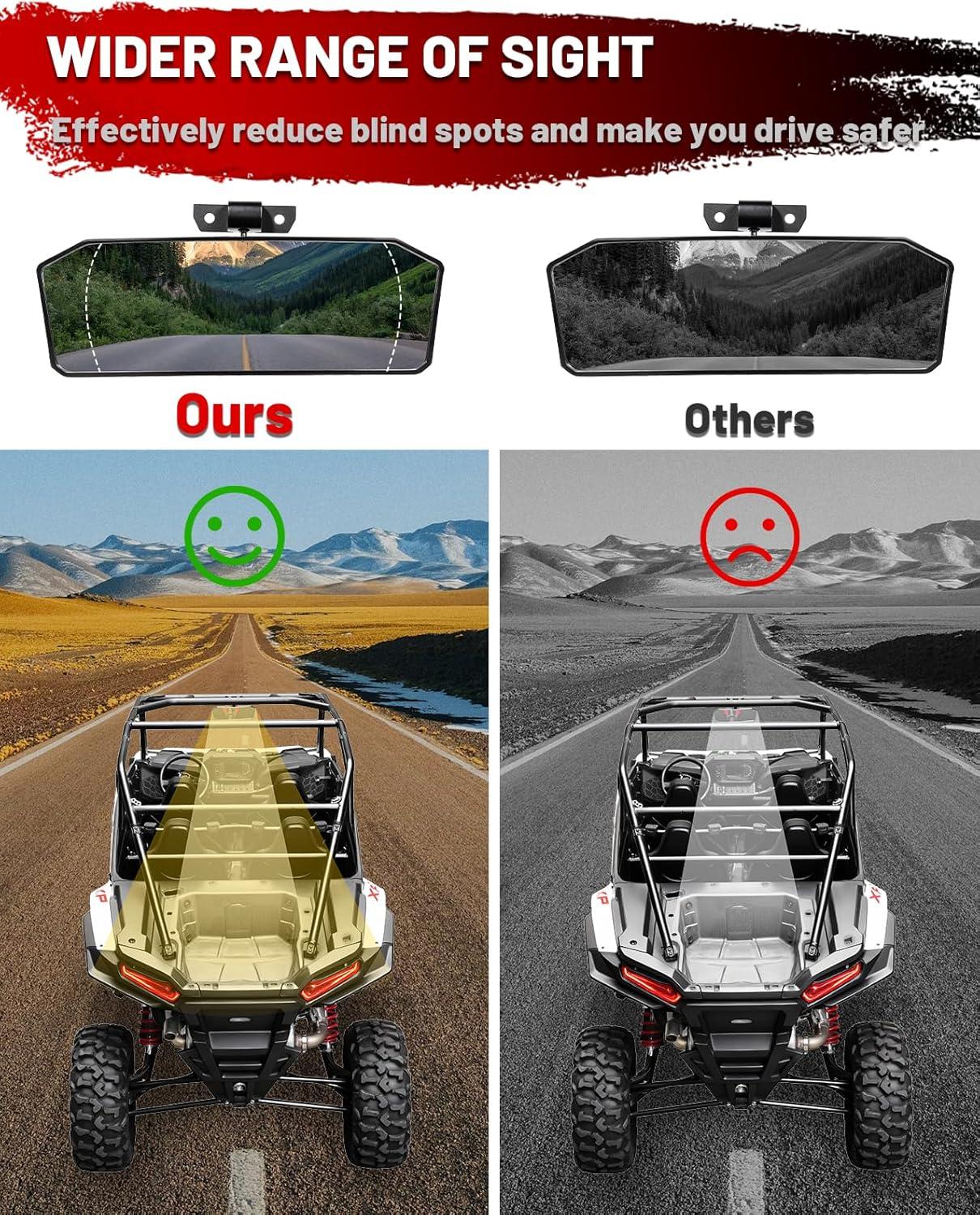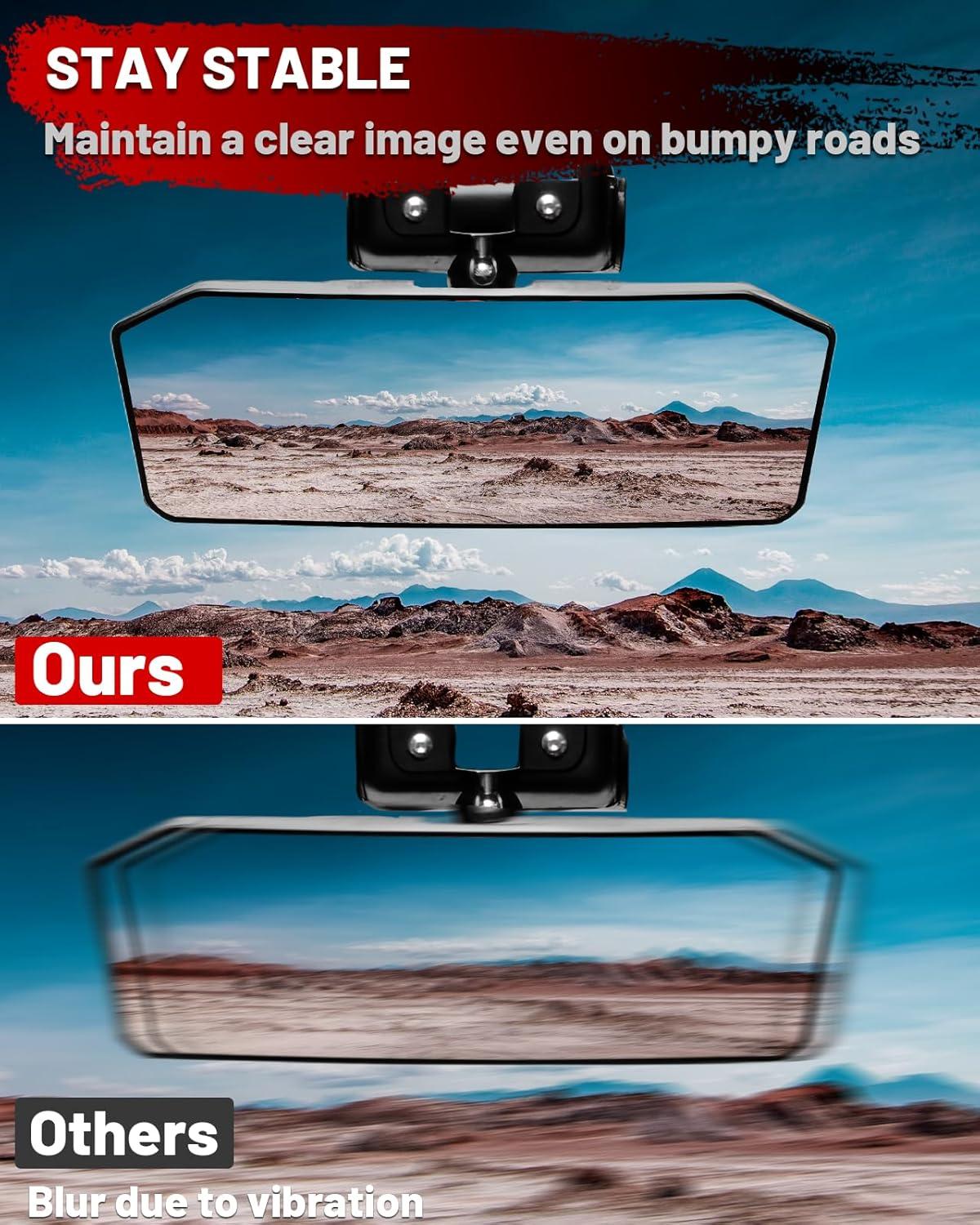 STAY STABLE: RZR center rearview mirror is not easy to shake. And RZR PRO XP rear view mirror maintains its position even on rough trails. Convex center rearview mirrors will continue to provide you with clear images. You will absolutely love rear view mirror for side by side