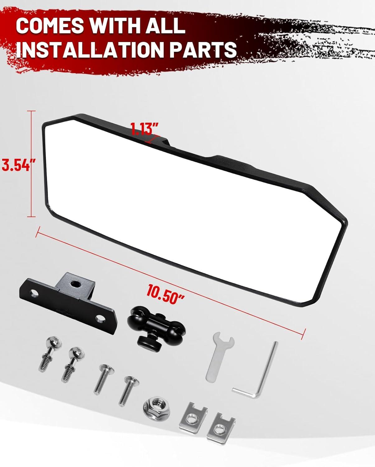 FITMENT: StarknightMT rear view mirror for UTV is compatible with Polaris RZR PRO XP 2025 2024 2023 2022 2021 2020/ RZR XP XP4 1000 2025 2024/ RZR PRO R 2022 2023/ RZR Trail 2023 2022 2021/ RZR Trail S 900 1000 2022 2021/ Turbo R center rearview mirrors wide. Replacement for OEM#2883763