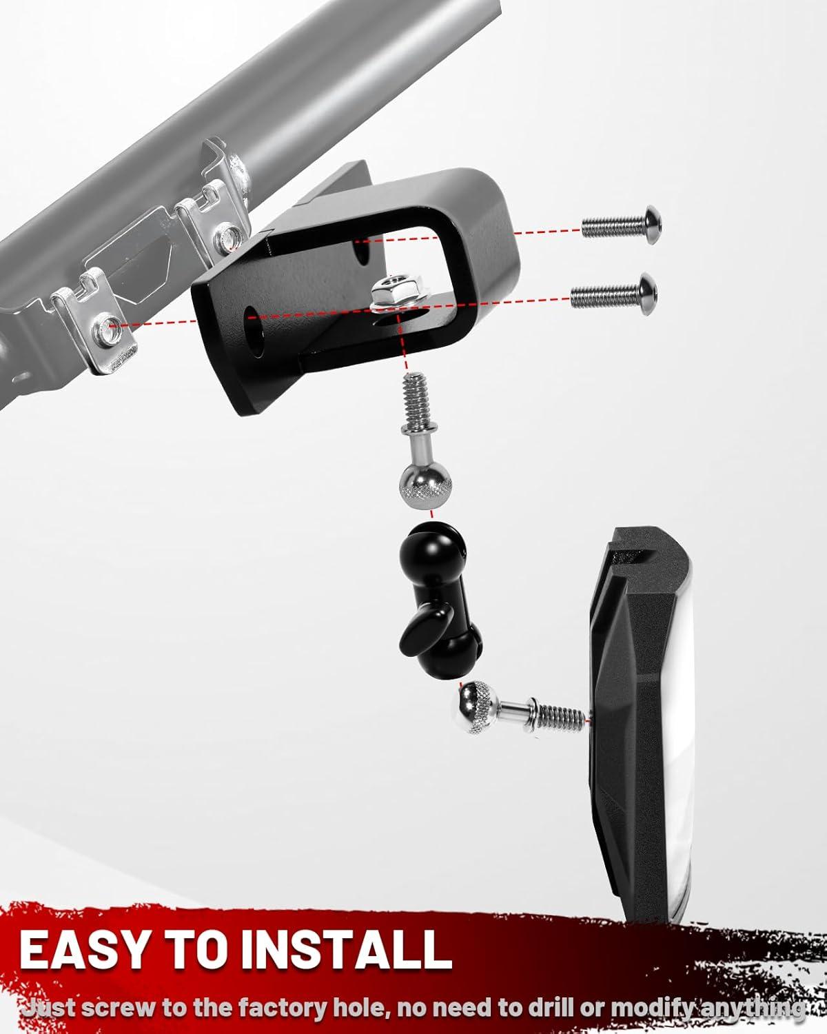 EASY INSTALLATION: Just screw to the factory hole, no need to drill or modify anything. The great adjustable UTV mirror is very easy to install. StarknightMT nice central mirror for UTV will come with all accessories required for installation