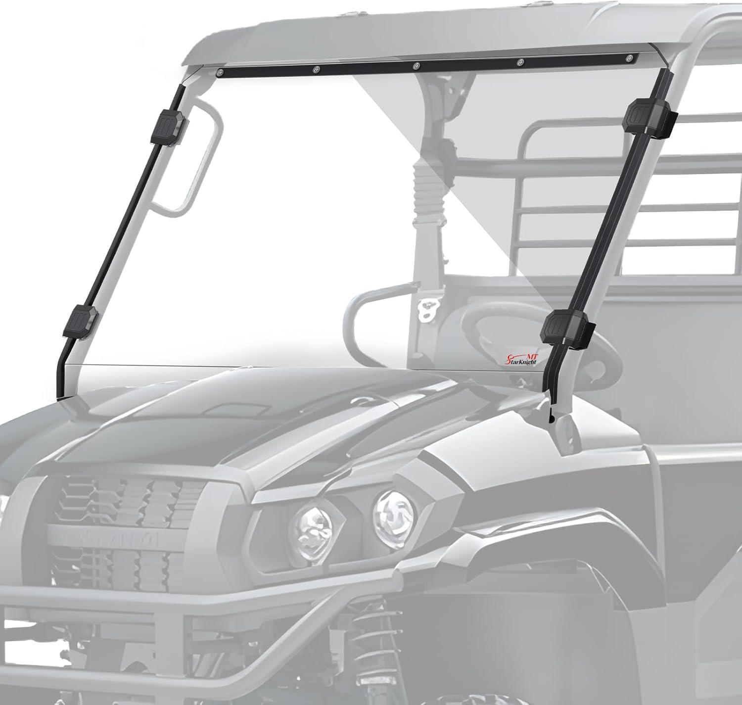FITMENT: StarknightMT UTV front full windshield is compatible with Kawasaki Mule Pro MX 2019-2026. 2-in-1 design allows you to remove the upper or lower windshield to get ventilation in a hot summer.You can use it as a full windshield or a half windshield
