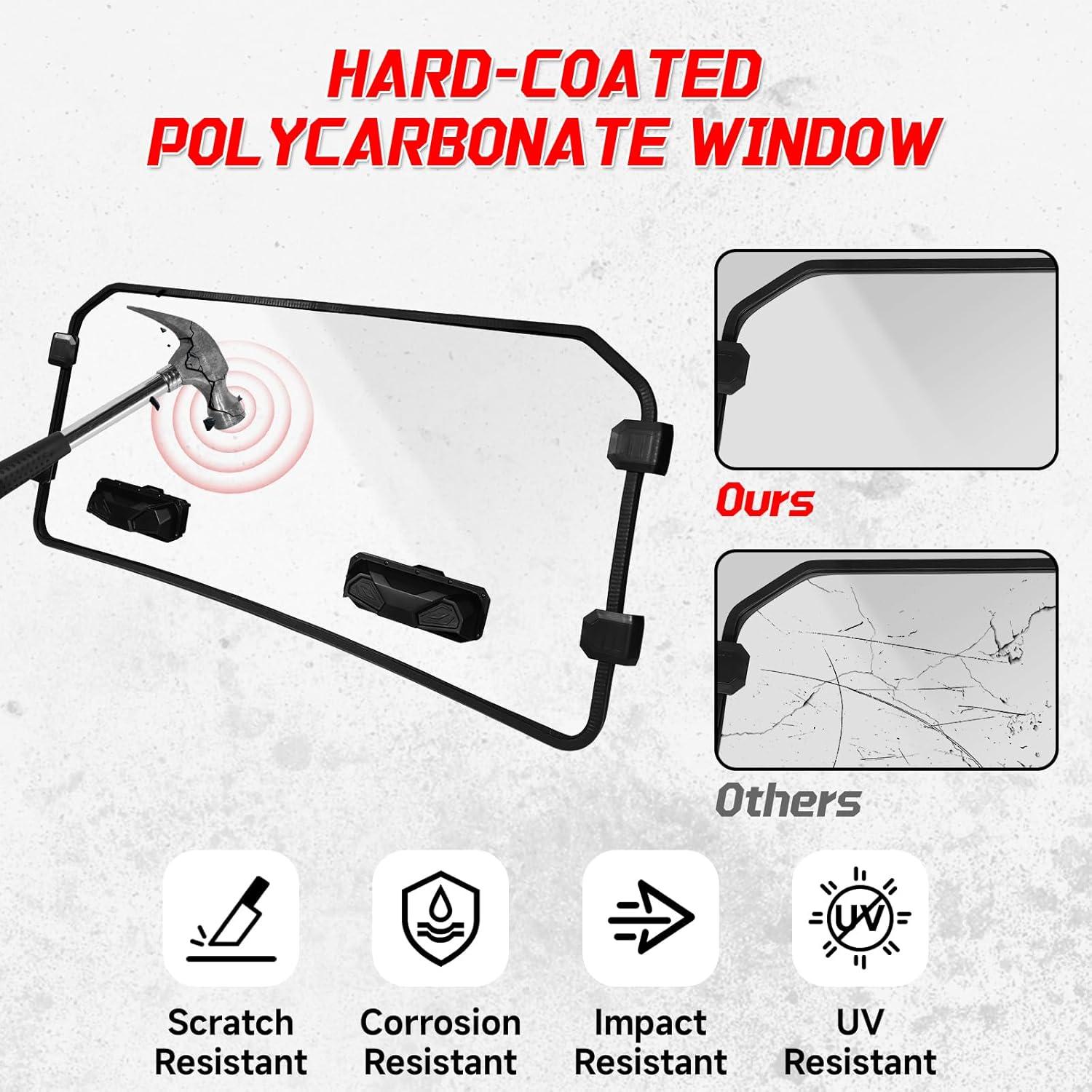 【Stronger Driving Protector】This General XP 1000 windshield is made of hard-coated polycarbonate (PC), its strength of 250x stronger than normal glass which can surely offer protection to you by stopping mud, stone, dirt, rain, and any other flying debris from getting into the cabin, especially when you are driving, which works as a reliable safeguard and improves your driving safety