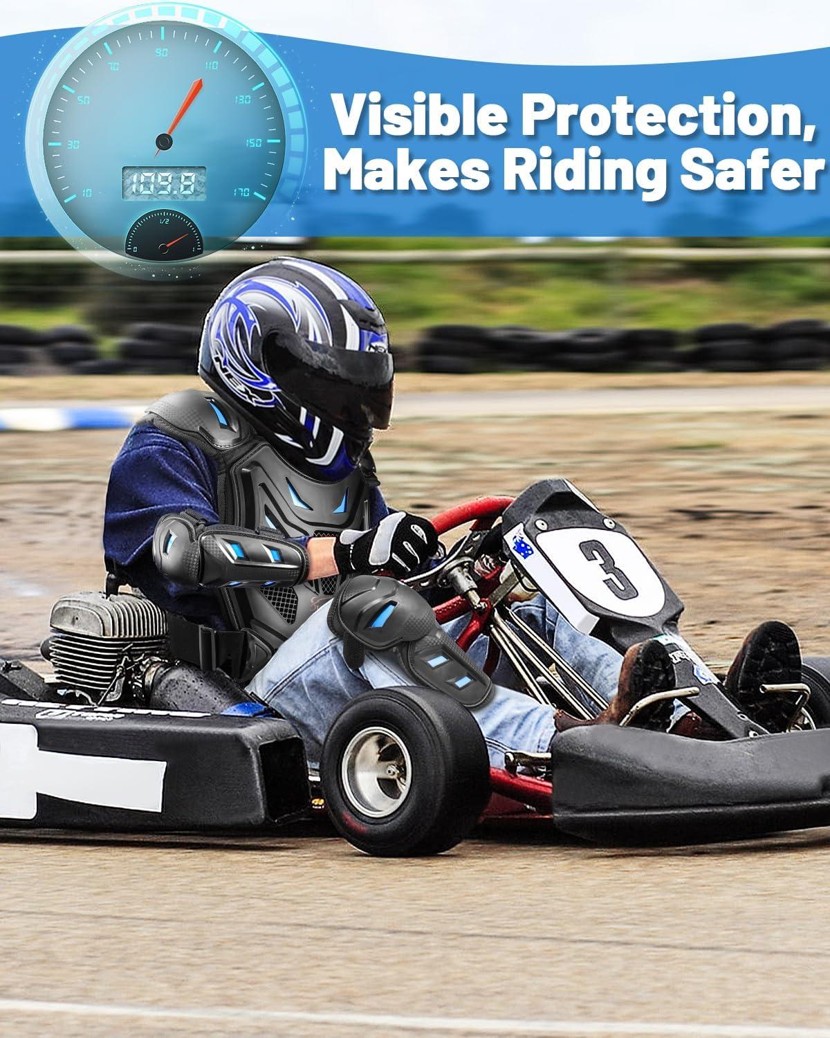 Professional and Special Armor For Kids: In addition to retaining the design of previous kids' motorcycle gear, this armor also adds additional designs to make your children's riding more comfortable and special; Upgraded Design: Breathable Design-Mesheye on the shell to increase air permeability; Bright Color-Sticker design, more colorful ; Cooler Look-Special bump design in the shell of shoulder, knee, elbow; Laser Logo; Diy creative area for kids
