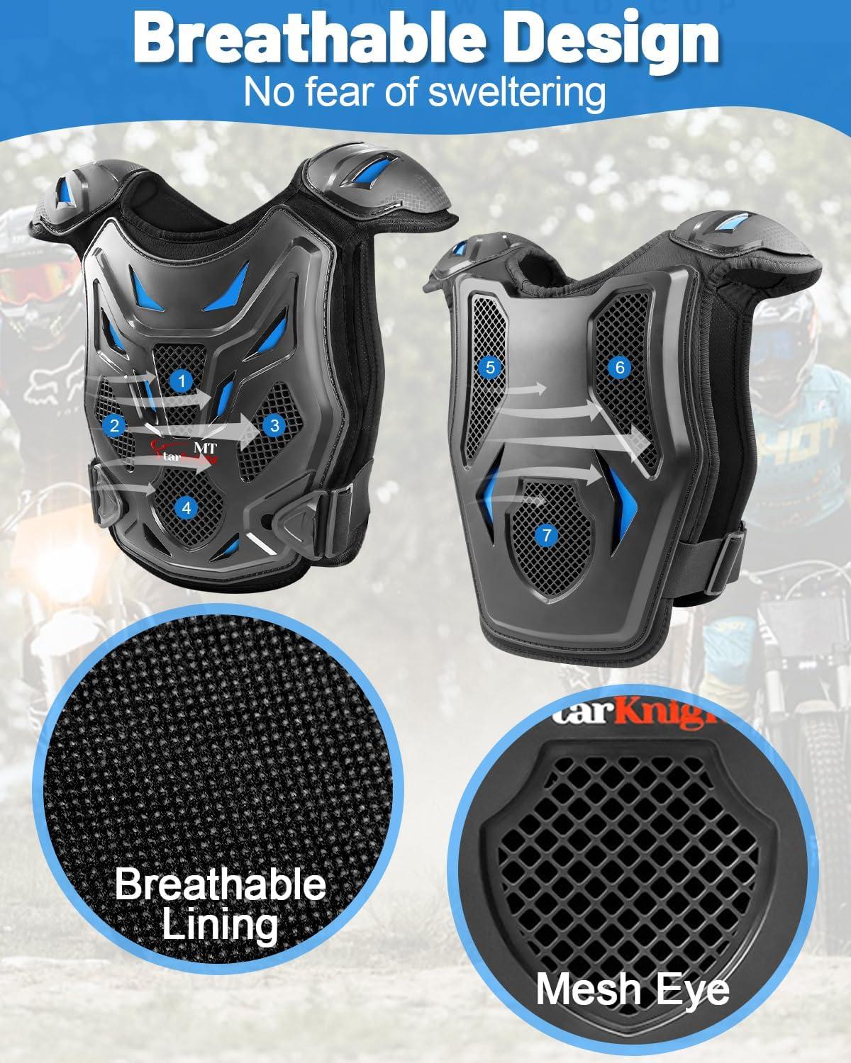 StarknightMT Kids Dirt Bike Gear-Upgraded Thicken Shell Youth Motorcycle Riding Professional Protective Gear Chest Protector Armor Suit for Motocross Cycling Off-Road Motorcycle Dirt Bike Kid, Blue(Blue)