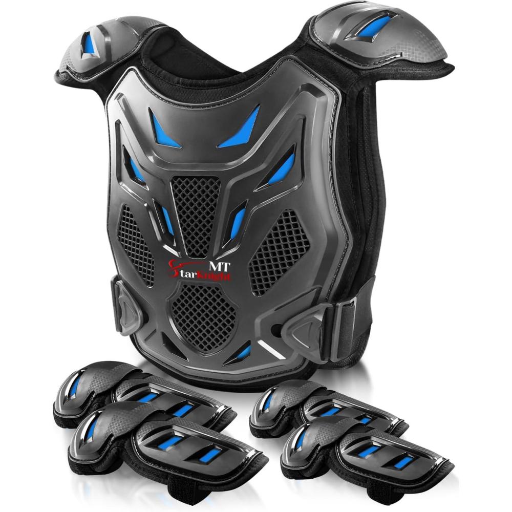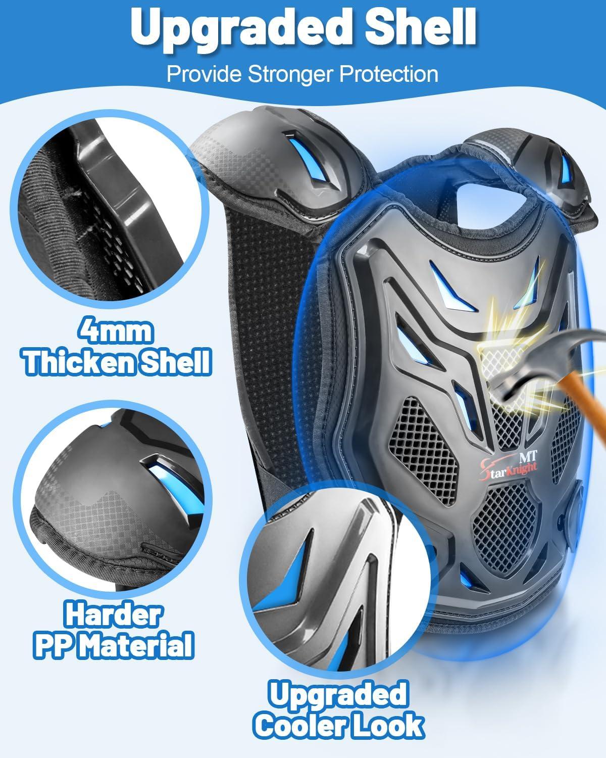 StarknightMT Kids Dirt Bike Gear-Upgraded Thicken Shell Youth Motorcycle Riding Professional Protective Gear Chest Protector Armor Suit for Motocross Cycling Off-Road Motorcycle Dirt Bike Kid, Blue(Black)