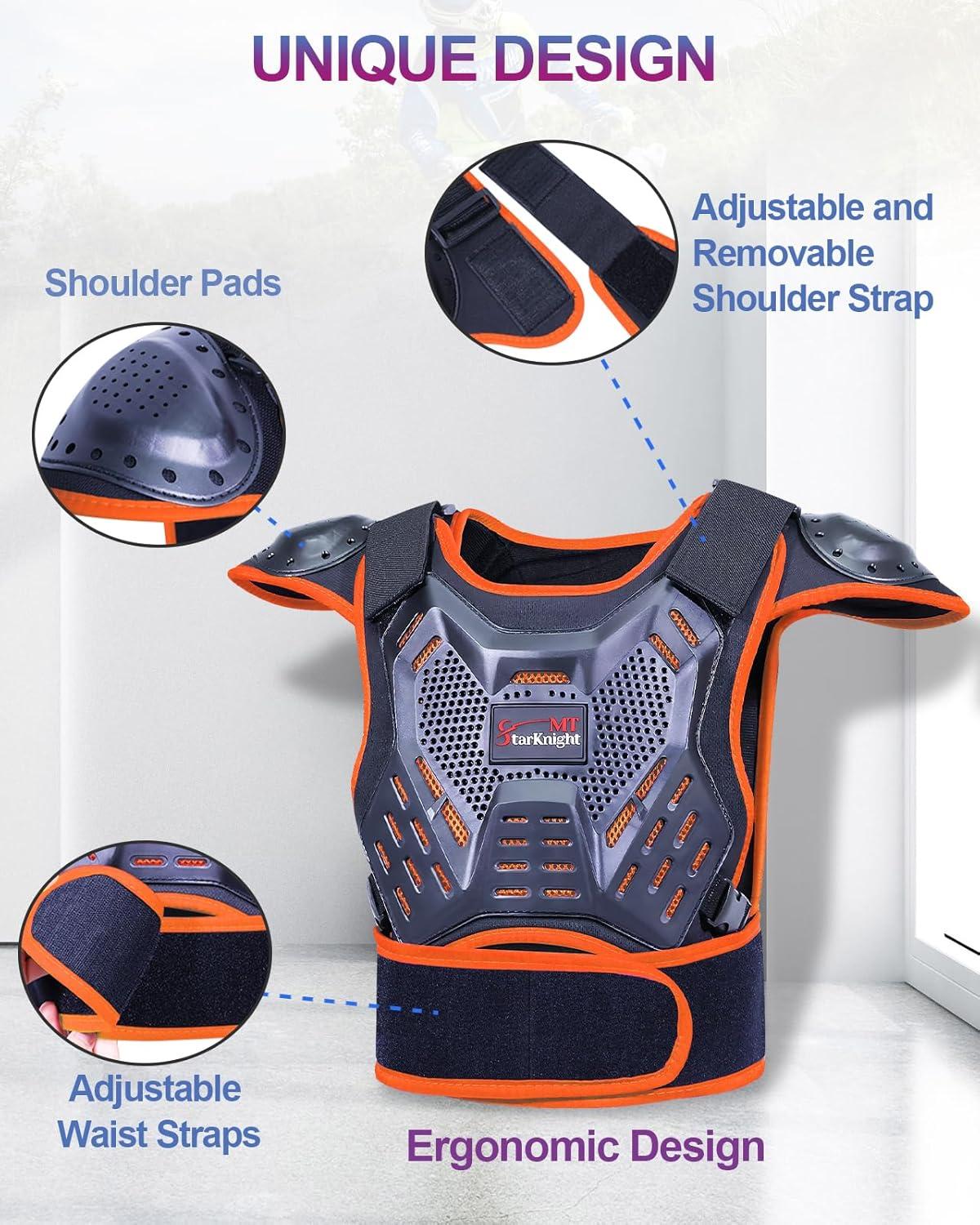 StarknightMT Kids Dirt Bike Gear - Youth Motorcycle Gear Riding Protective Motocross Armor Suit Chest Protector for Boys Girls Biking Cycling Skating Off-Road(Orange)