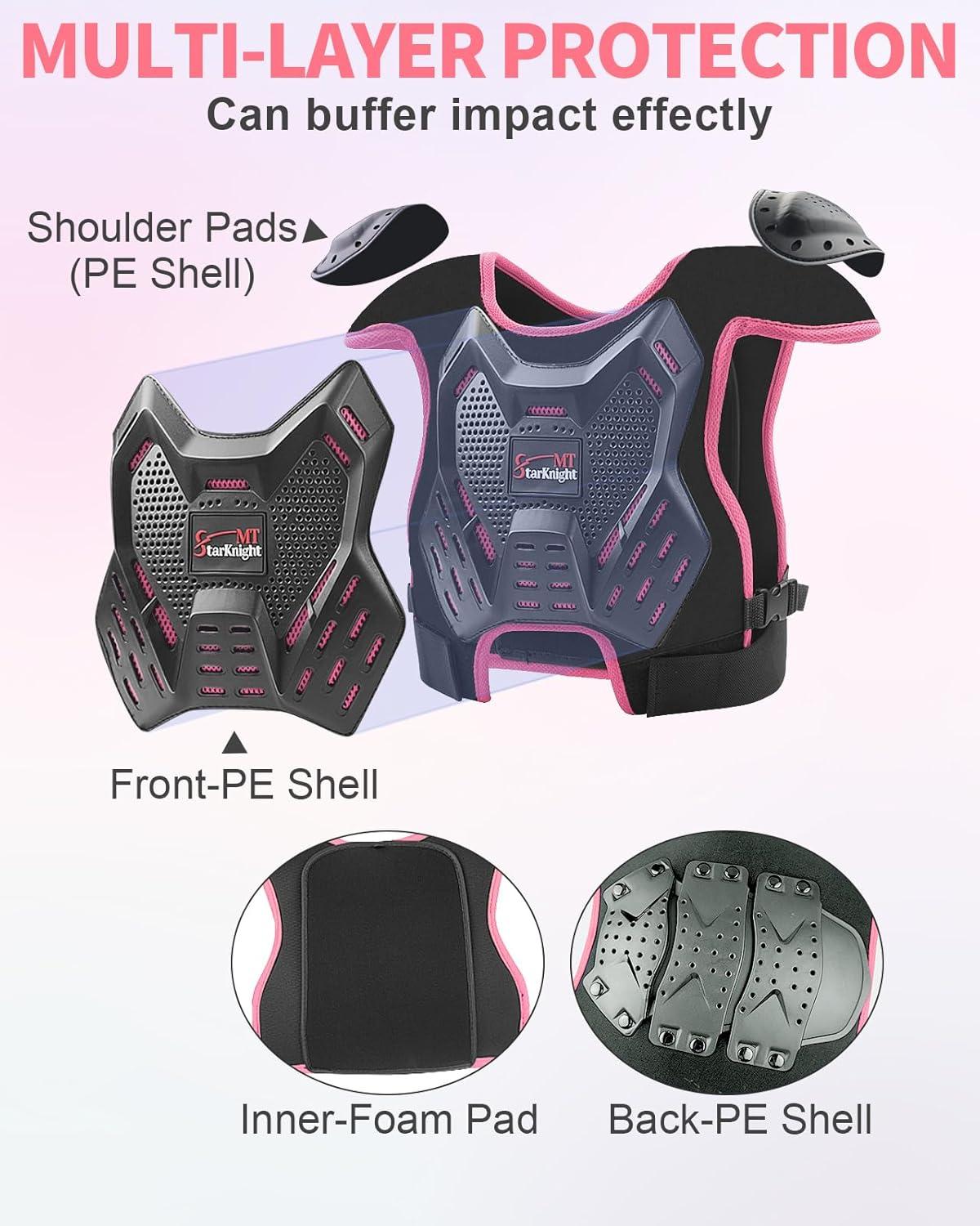 StarknightMT Kids Dirt Bike Gear - Youth Motorcycle Riding Protective Gear Motocross Armor Suit Chest Protector for Boys Girls Mountain Biking Cycling(Pinkish)