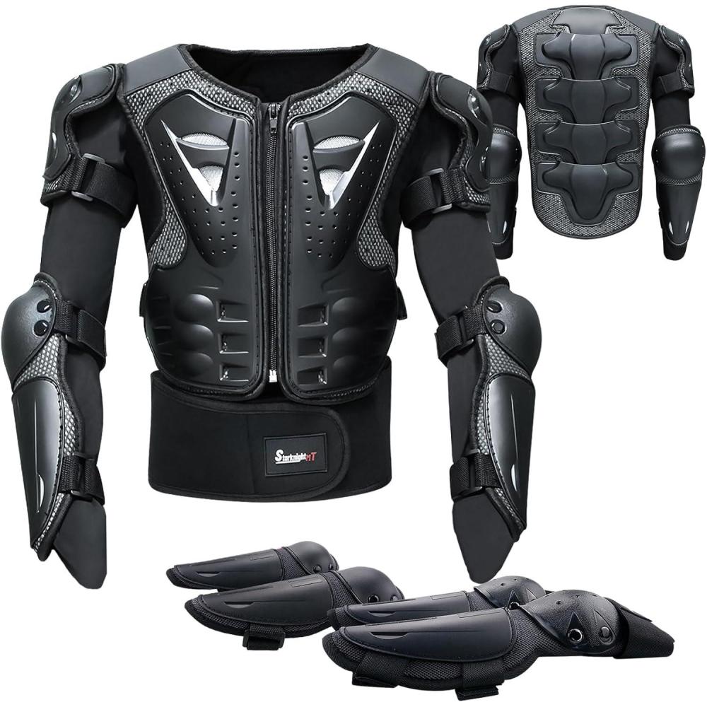 StarknightMT Kids Motorcycle Armor Suit Dirt Bike Gear Riding Protective Chest Spine Back Protector Shoulder Arm Elbow Knee Protector Pads for Cycling Skateboard,Skiing,Skating,Off-Road(Black)