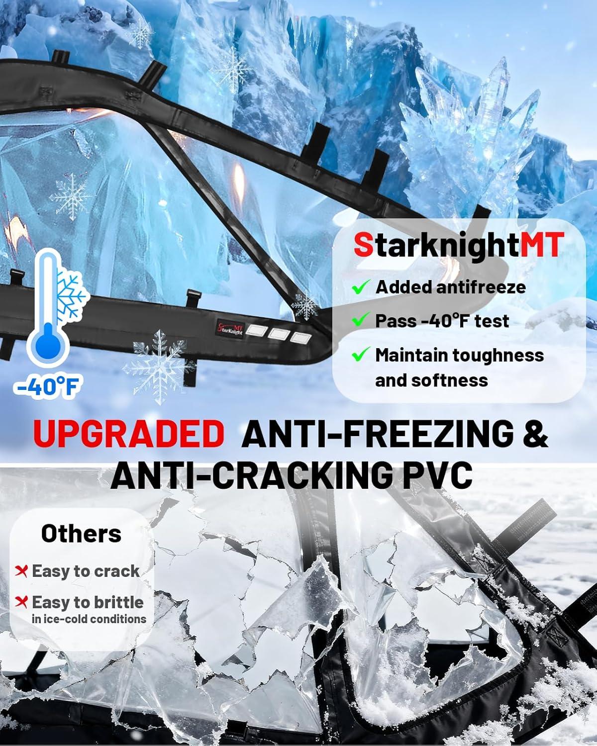 Fitment: The StarknightMT cab enclosure is compatible with Can-Am Maverick R 2024 2025 (2 Doors Only). Designed to work with the roof, front windshield and side mirrors