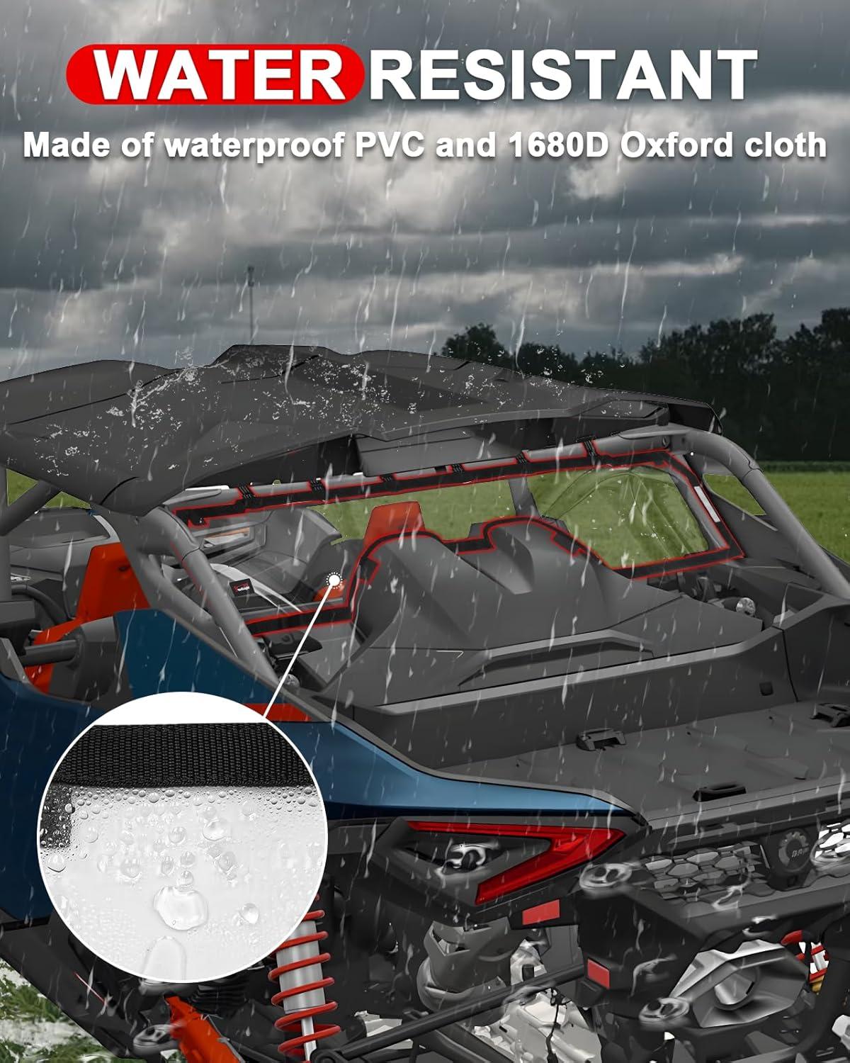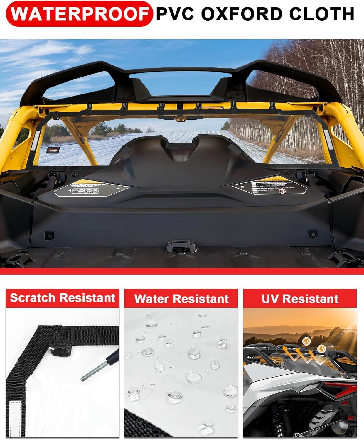 DUSTPROOF & WATERPROOF: The Maverick R back window is made of waterproof PVC and 1680D Oxford cloth, it can effectively prevent dust,wind,rain,debris,snow from coming in your cab