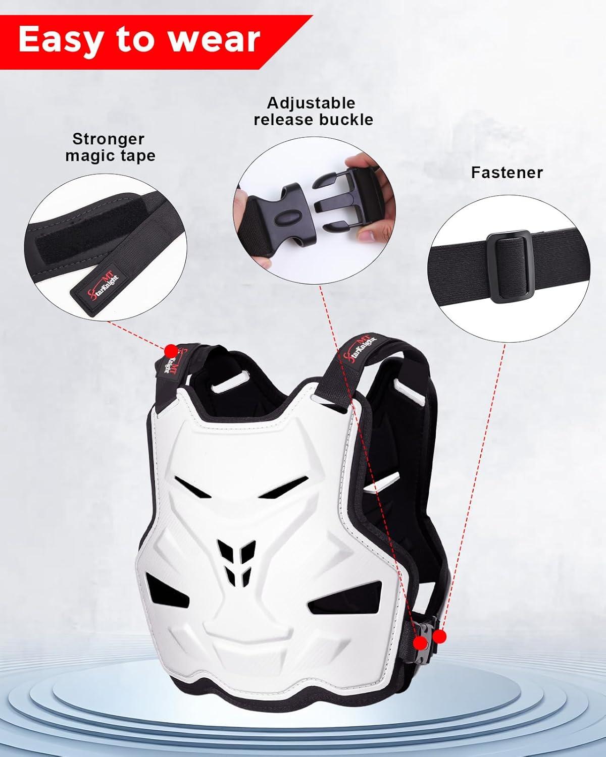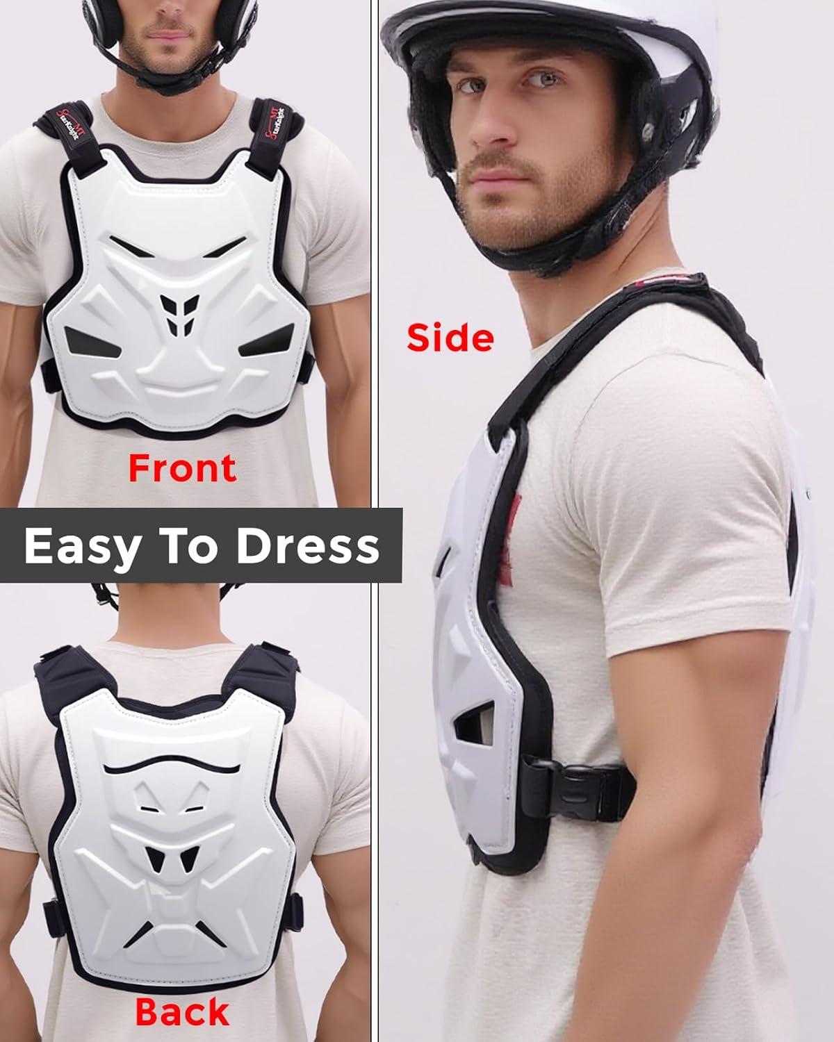 StarknightMT Motorcycle Chest Armor Lightweight Adult Men Motocross Chest Protector, Adjustable Body Armor Vest for Motocross Riding Road Racing Cycling Skiing Skating Easy-wear​​ Chest Guard(White)