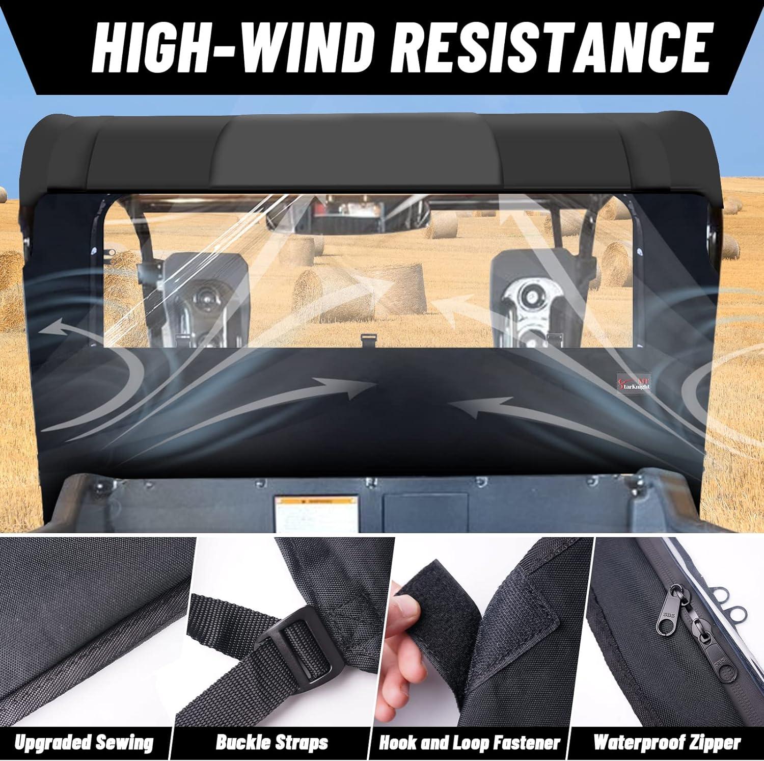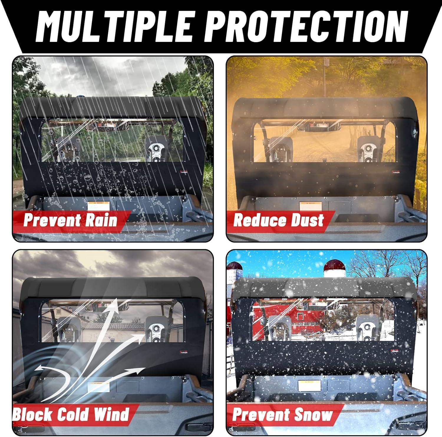 Heavy-duty Material: The pioneer rear windshield is made of durable oxford fabric with waterproof coating, and thickened PVC mid-transparent panel can avoid cracks or tear in high wind. Besides, the UV coating surface will protect the front seat and dust panel from fading under the sun radiation
