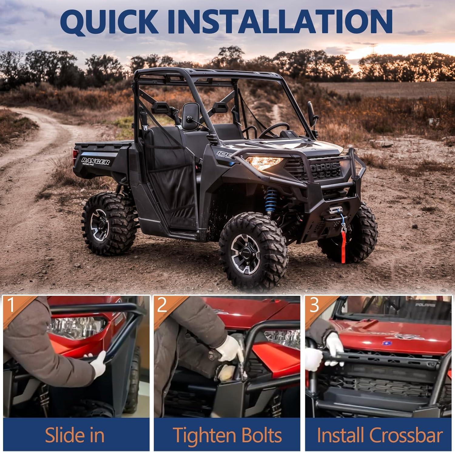 Fitment: The StarknightMT utv front bumper is compatible with ranger xp 1000 2018-2024, ranger 1000 2020-2024, ranger crew xp 1000 2018-2023, ranger crew 1000 2020-2023 (Not fit for high lift edition, With Ride Command Package, Big Game Edition, Waterfowl Edition) Please see the detailed models in the product description