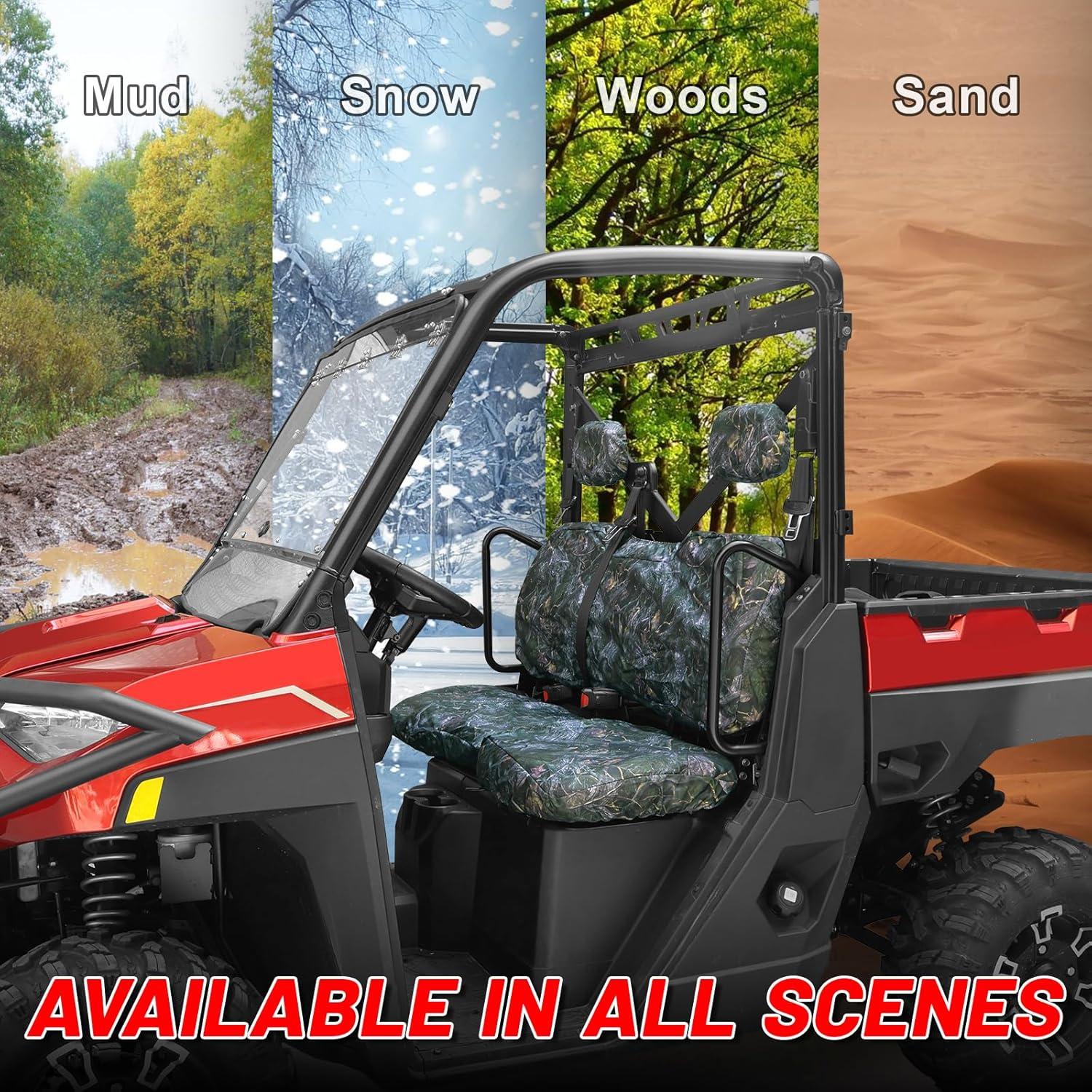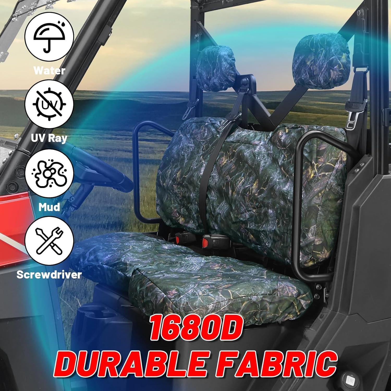 【Easy Installing】You can easily install and remove the seat cover compatible with polaris ranger, the package contains passenger bottom seat cover, driver bottom seat cover, and back seat cover.