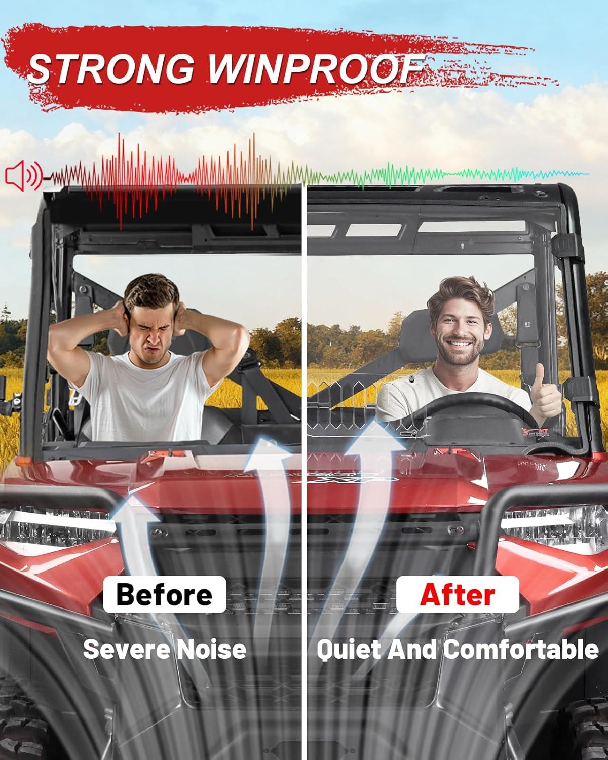 【Easy Installation】The ranger windshield comes with all neccessary accessories and tools, you can complete installation qiuckly by following the instruction manual or installation video on product page, there are no drilling and other tools needed.