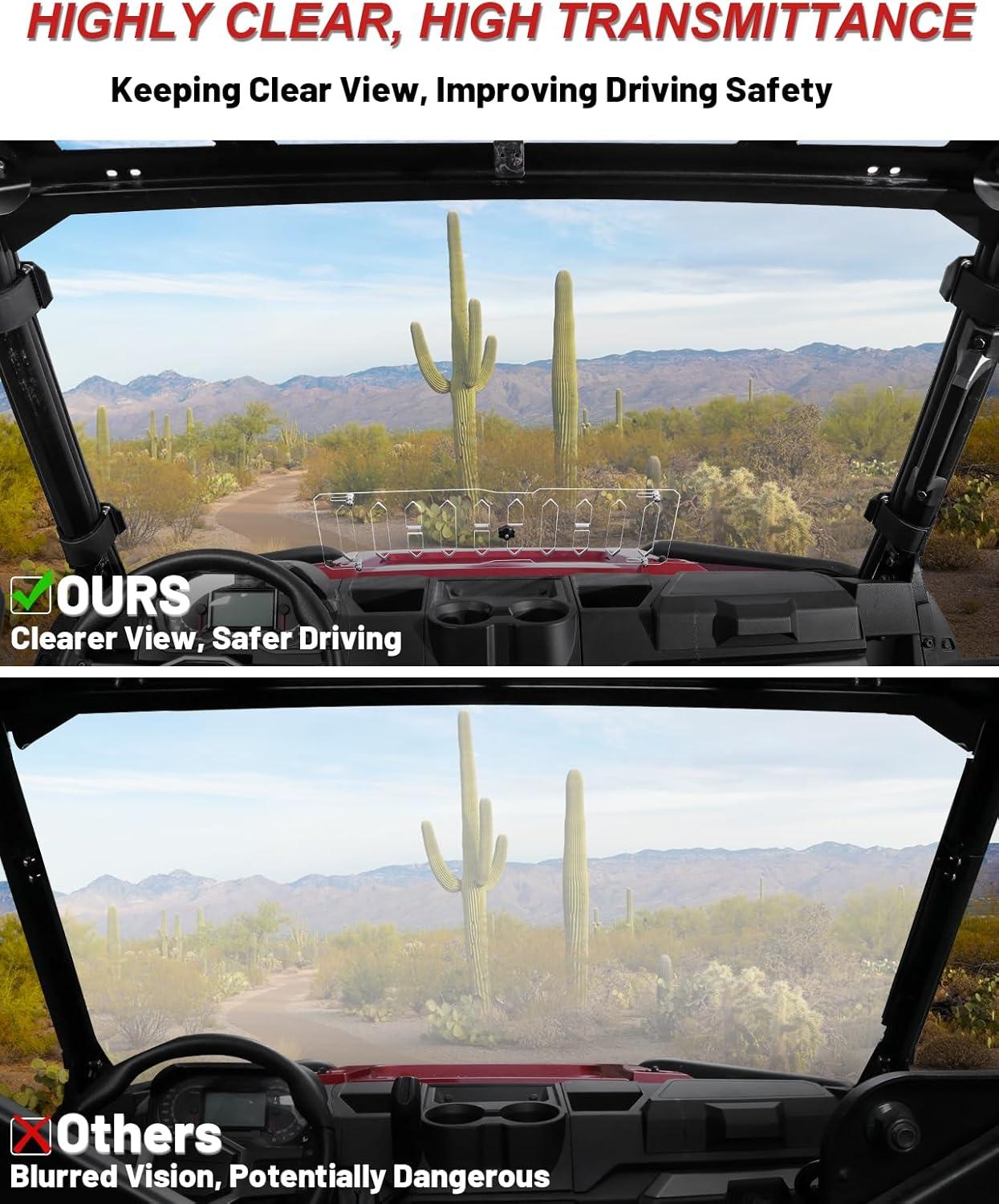 【Strong Protection】After the ranger xp 1000 windshield is installed, it can stop mud, stone, dirt, rain or other flying debris from getting into the interior, espcially when you are on driving, which works as a reliable safeguard and improves your driving safety.