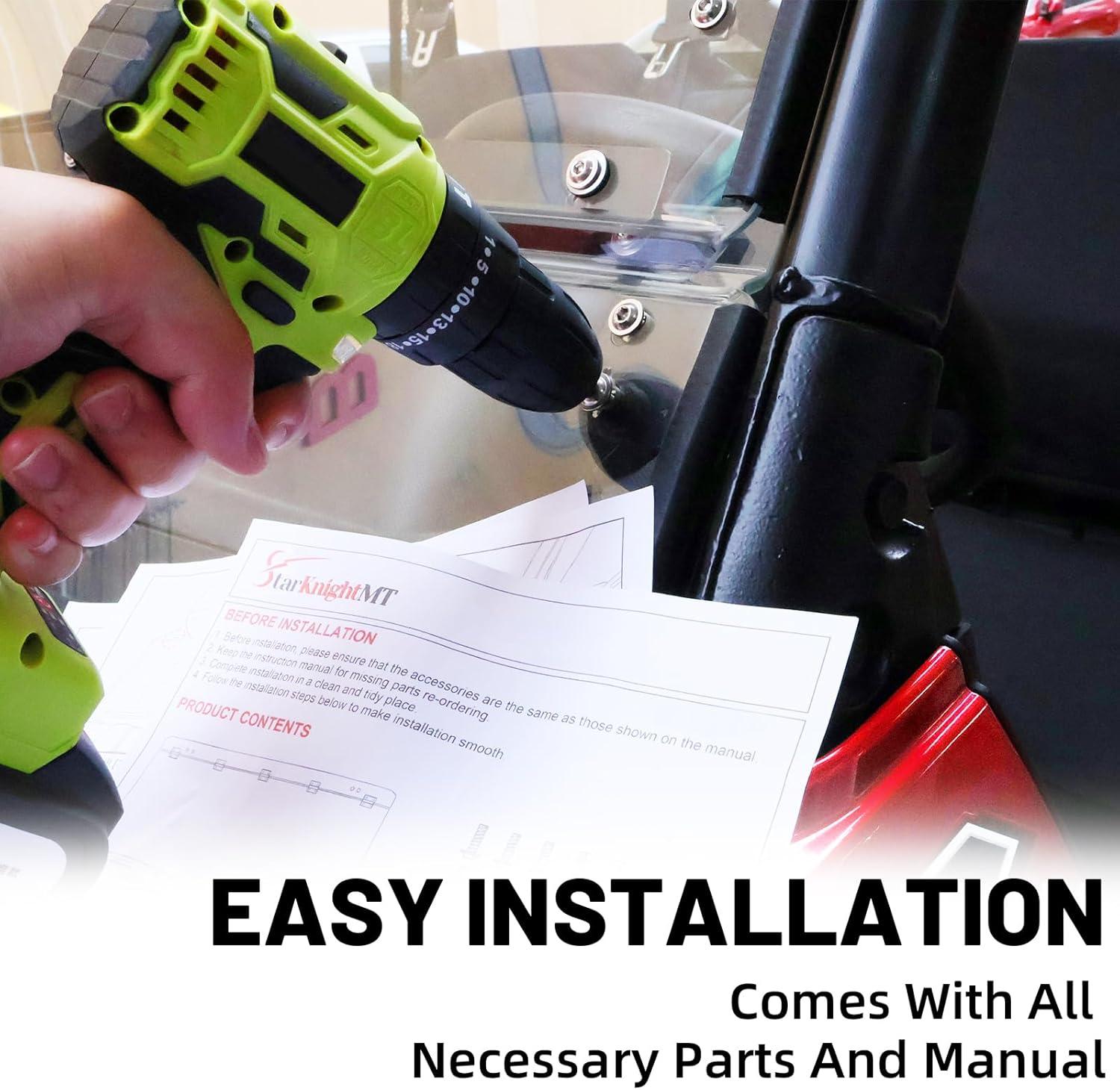 【Easy Installation】The ranger 1000 front glass can be installed securely with attached clamps, you can complete installation qiuckly, whether you refer to the instruction manual or not, there are no drilling and other tools needed.