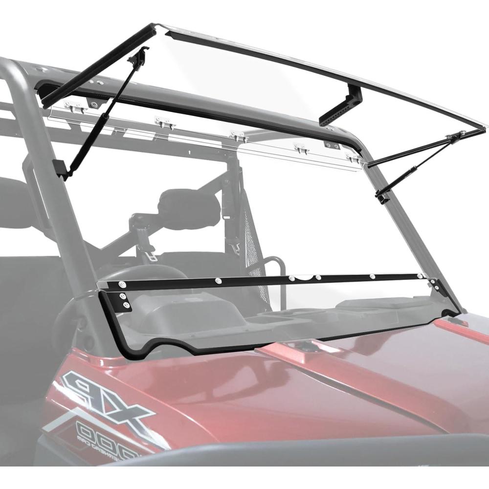 【Durable Material】 The ranger 1000 windshield is made of high quality polycarbonate, it is anti-scratch, anti-uv, durable and strong. Both sides of the windshield for polaris ranger 1000 are hard coated to get better scratch resistance.