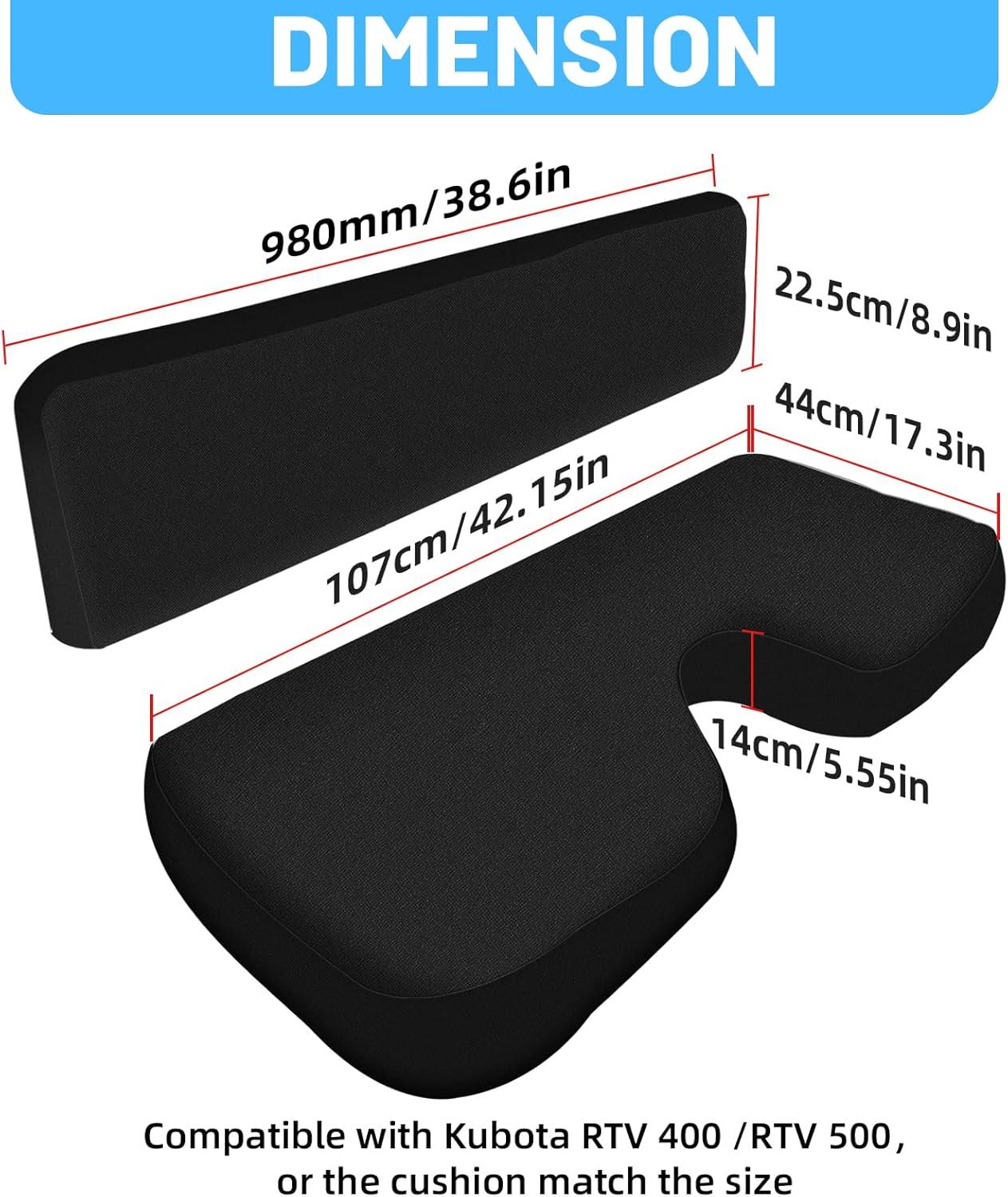 Original Equipment Standards:The RTV Seat cover is perfectly compatible with Kubota RTV 400 & RTV500. The seat cushions are designed with three-dimensional sides to fit snugly on the seats. Non-heat-absorbing material, making you more comfortable to ride