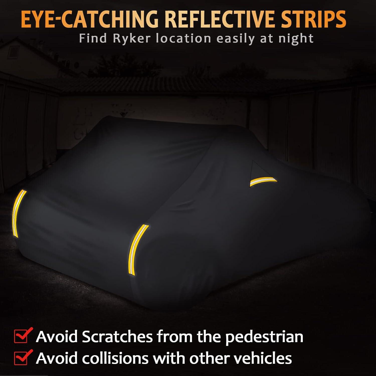 Windproof Cover: The Ryker 600 cover can defend against high wind because we use thick and strong windproof webbings, adjustable elastic hem, and extra windproof buckle straps that can prevent the cover from blowing off in the strong wind, rainstorms