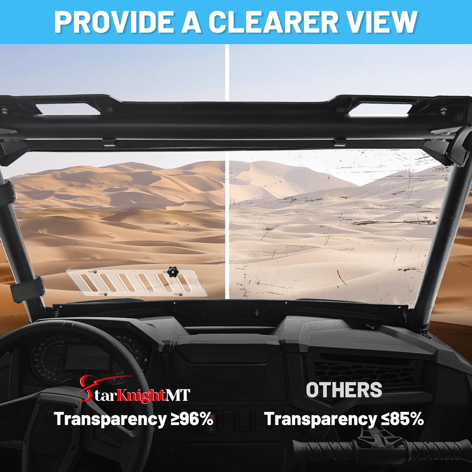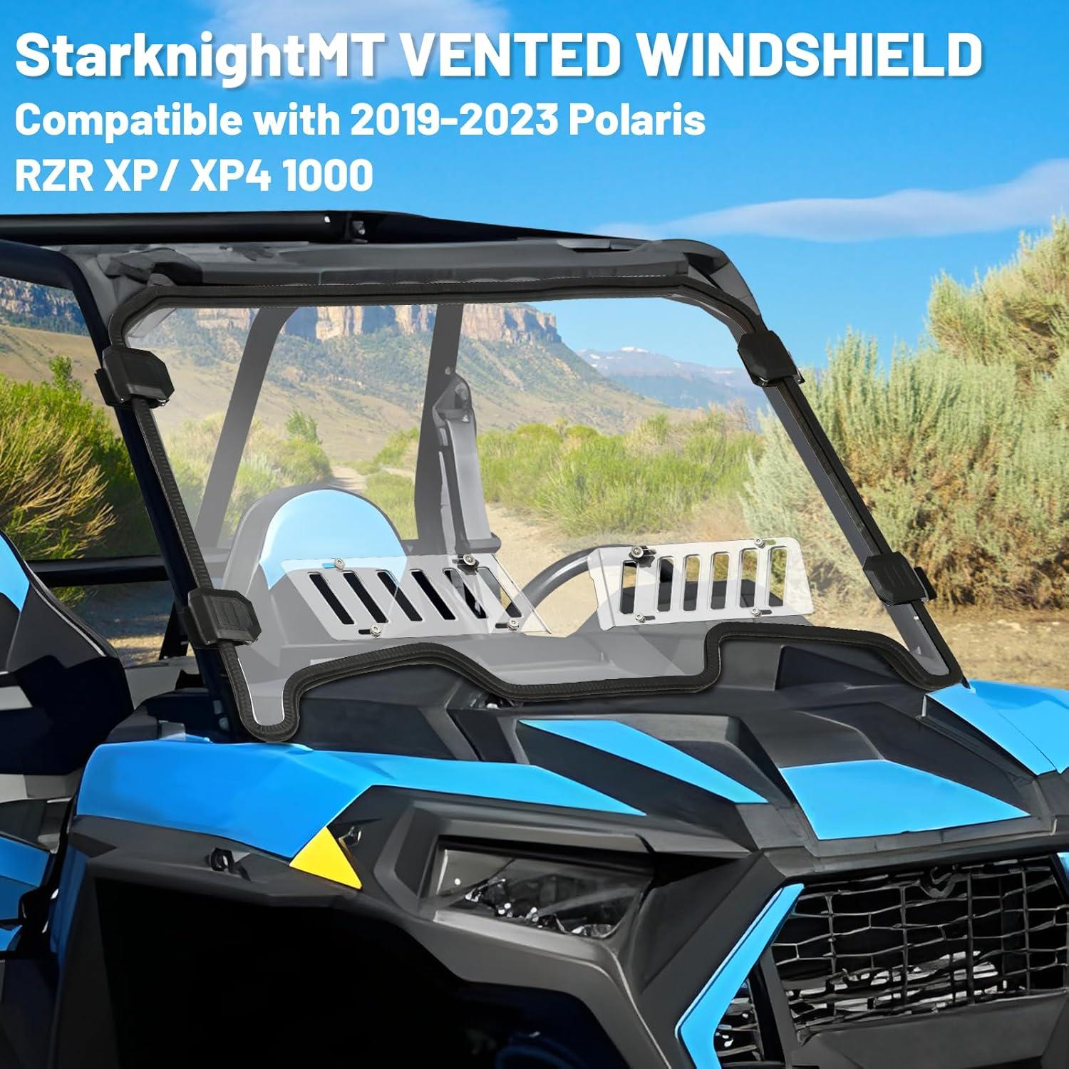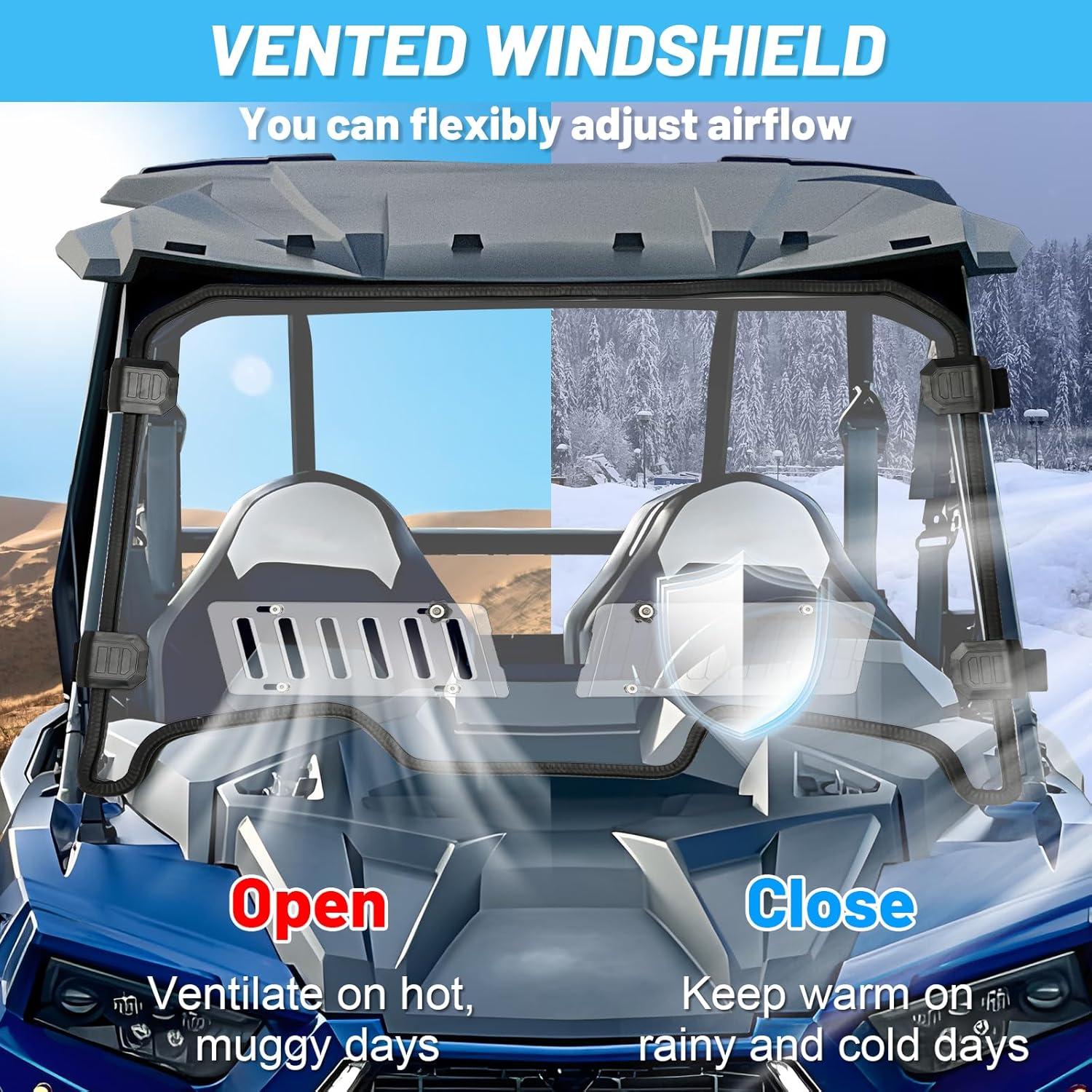 Vented Window: StarknightMT sliding vent windshield allows you to adjust the direction and amount of airflow for maximum comfort, You can both feel the breeze on hot days and get full protection against rain, dust, mud, and tree branches. Also, air directed to the inside of the window can prevent fogging in chilly winter