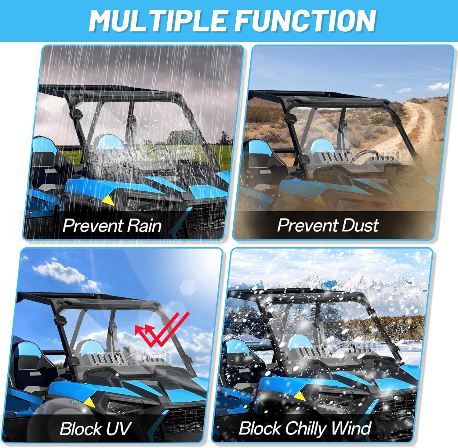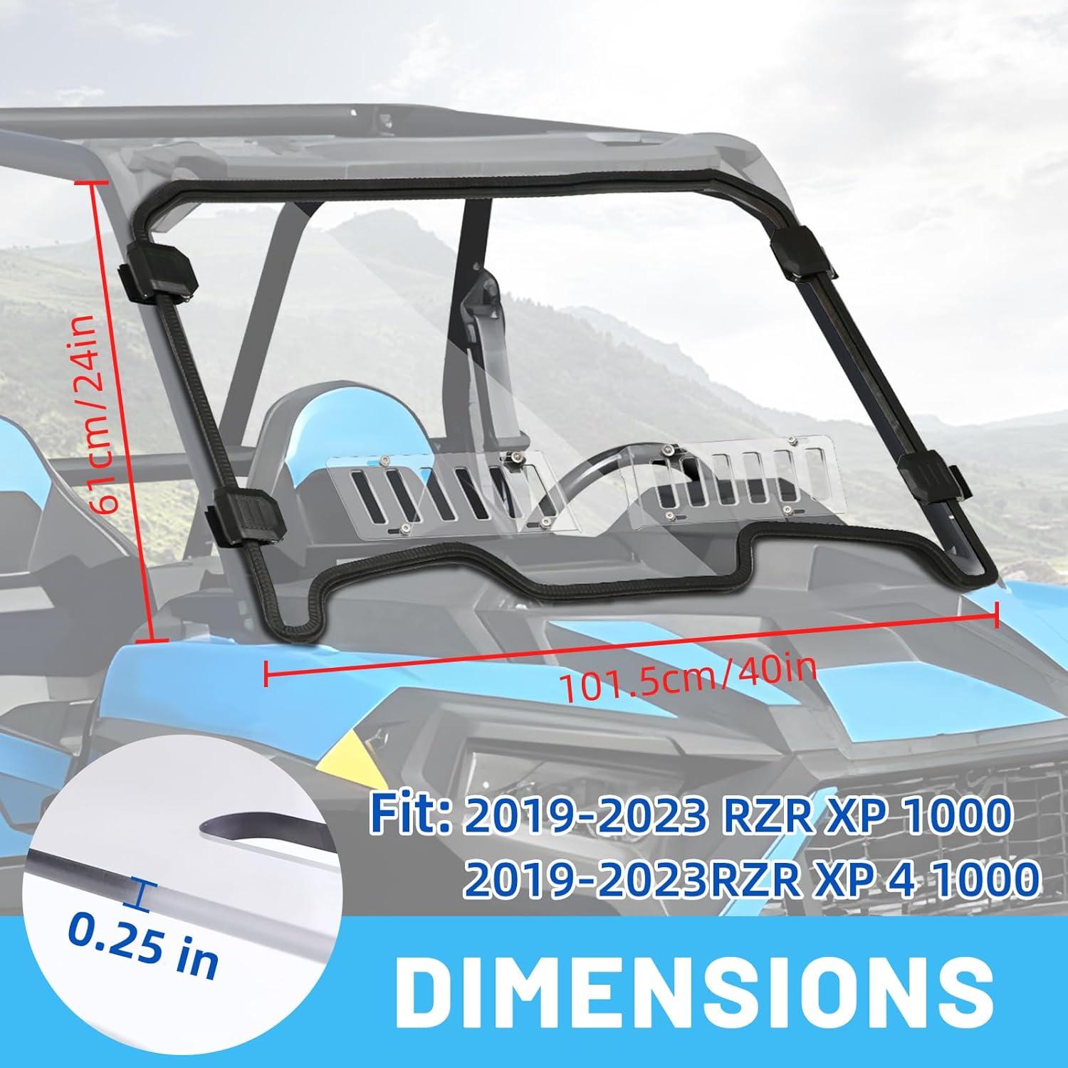 Fitment: The RZR 1000 windshield compatible with 2019-2023 RZR XP 1000/XP 4 1000 and 2019-2021 RZR XP Turbo/XP 4 Turbo; Replacement of OEM 2884018; It fits soft and hard roof, Protecting your UTV cab from wind, sand, debris, snow, rain and so on