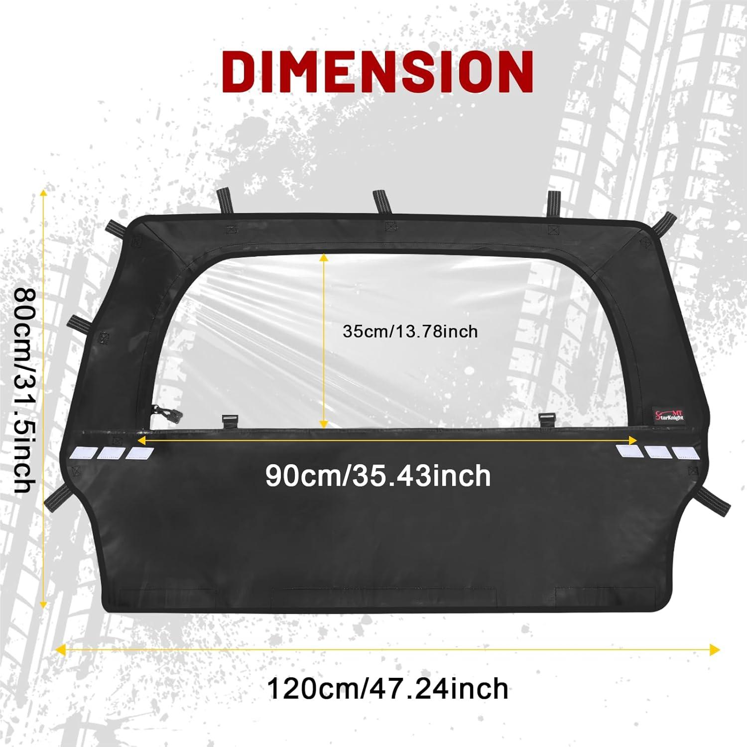 TEAR PROOF MATERIAL: The StarknightMT back window is made of high-quality thickER PVC material and features water-protected, and puncture-protected; The durable 600 Denier Oxford fabric has excellent abrasion protected and can stay long-lasting colors