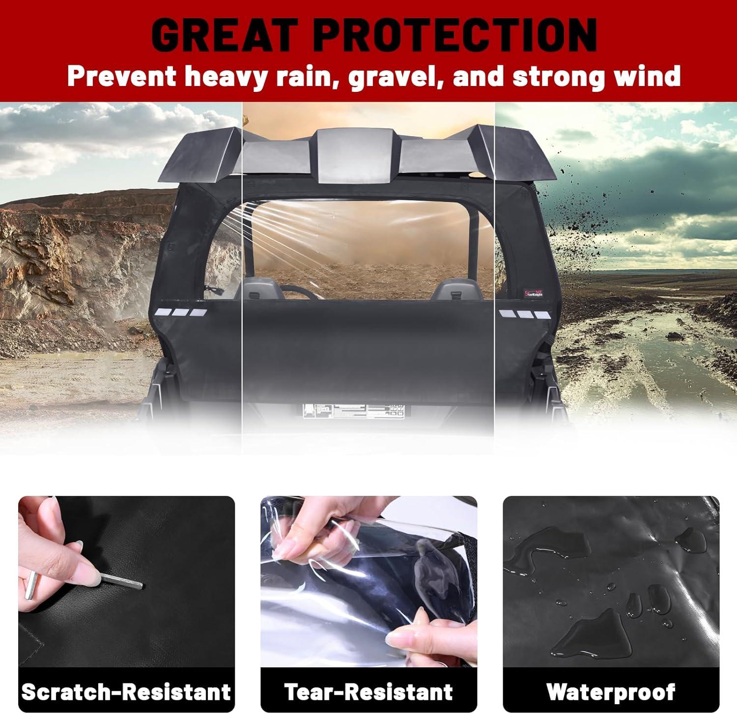 GREAT PROTECTION: This StarknightMT rzr rear window can effectively reduce the entry of mud and rain to keep the cab a little cleaner, which not only provides additional weather protection but also helps reduce dust noise and heat blowing from the engine