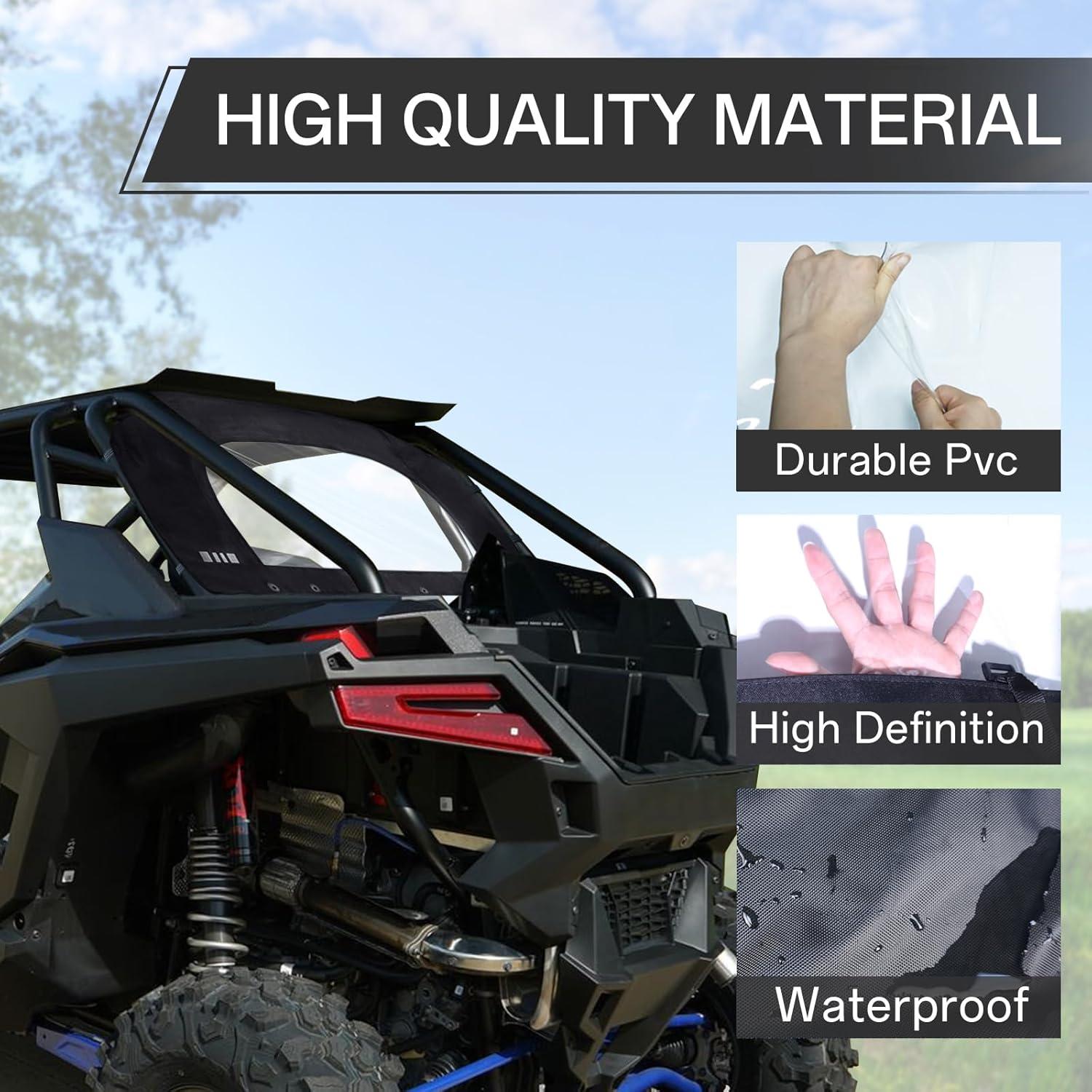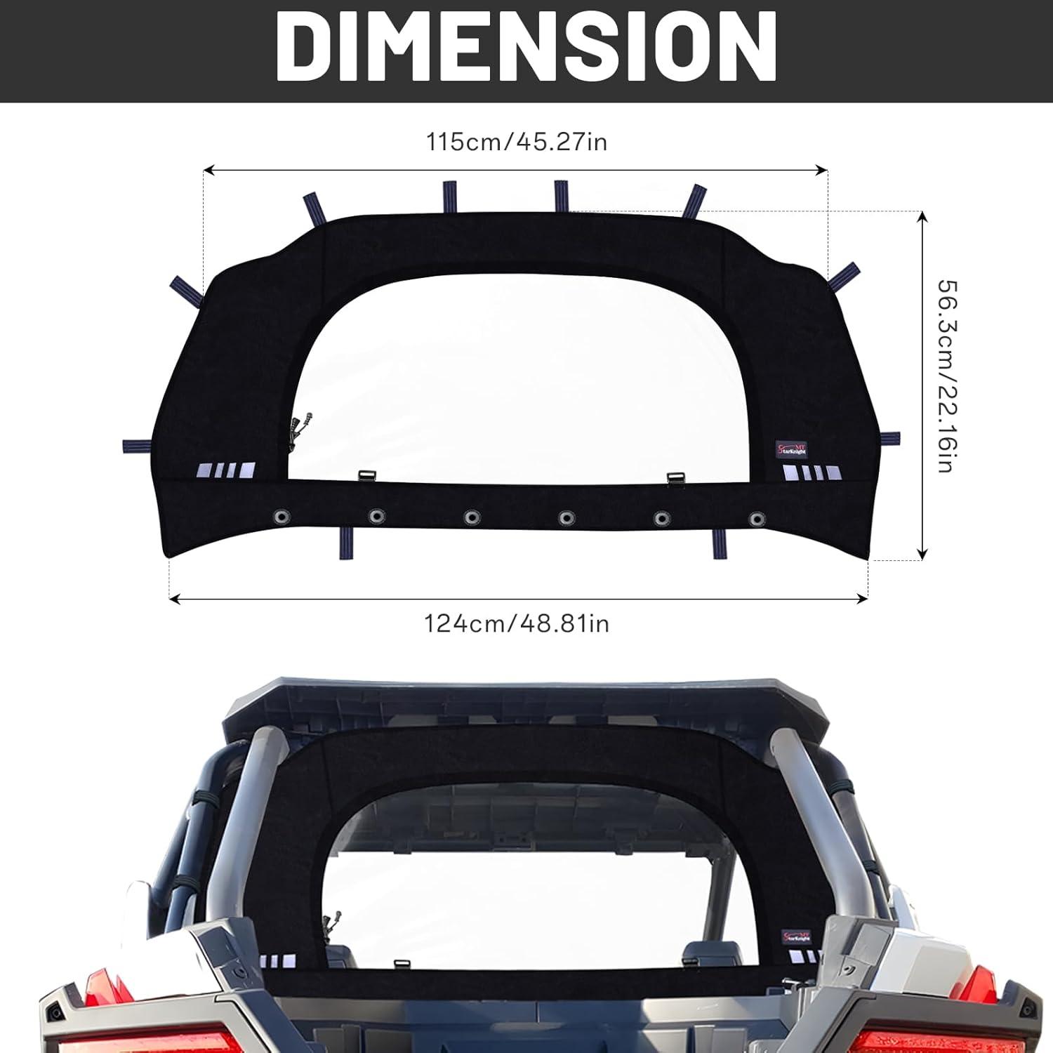 Compatibility: The RZR rear back windshield is compatible with Polaris RZR Pro XP /TURBO R 2020 2021 2022 2023 2024. Note: only for 2 Seaters,not fit for 4 Seaters. Does not match the car with the roof and rear speaker