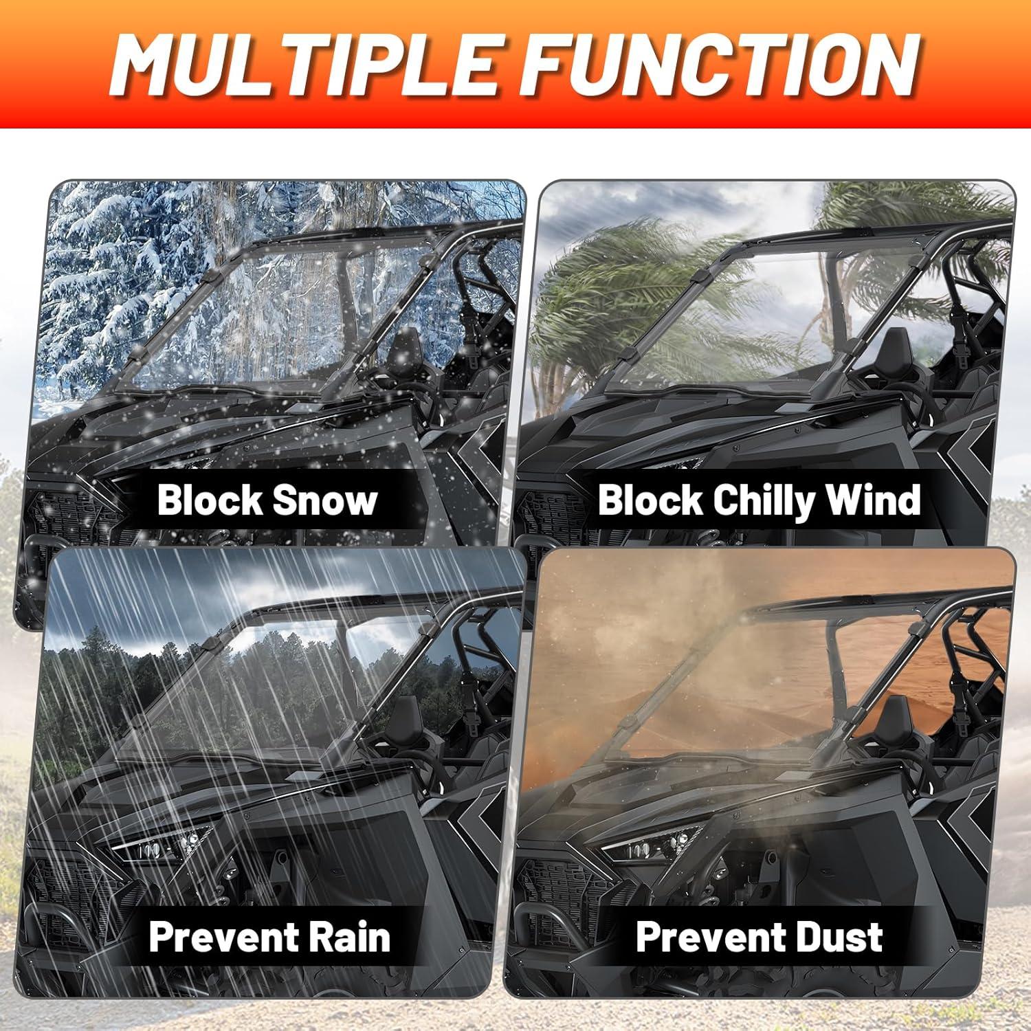 【Well Match】RZR pro xp front windshields are precision crafted to fit the body with minimal gaps, pay attention to the details of the product, so the utv front windshield has a better waterproof and windproof effect. It is effective in reducing the cold in winter and does not get caught in the rain on rainy days