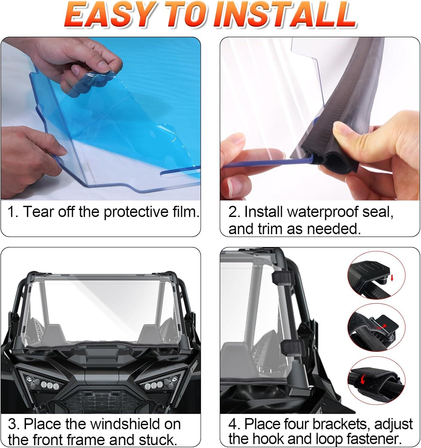 【Easy Installation】 The full windshield for rzr pro xp is very easy to install, even one person can make it. A detailed instruction manual is attached to the package. If any questions about installation, could refer to the attached instruction manual at first
