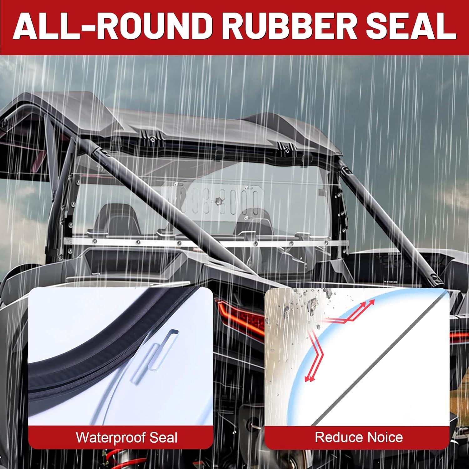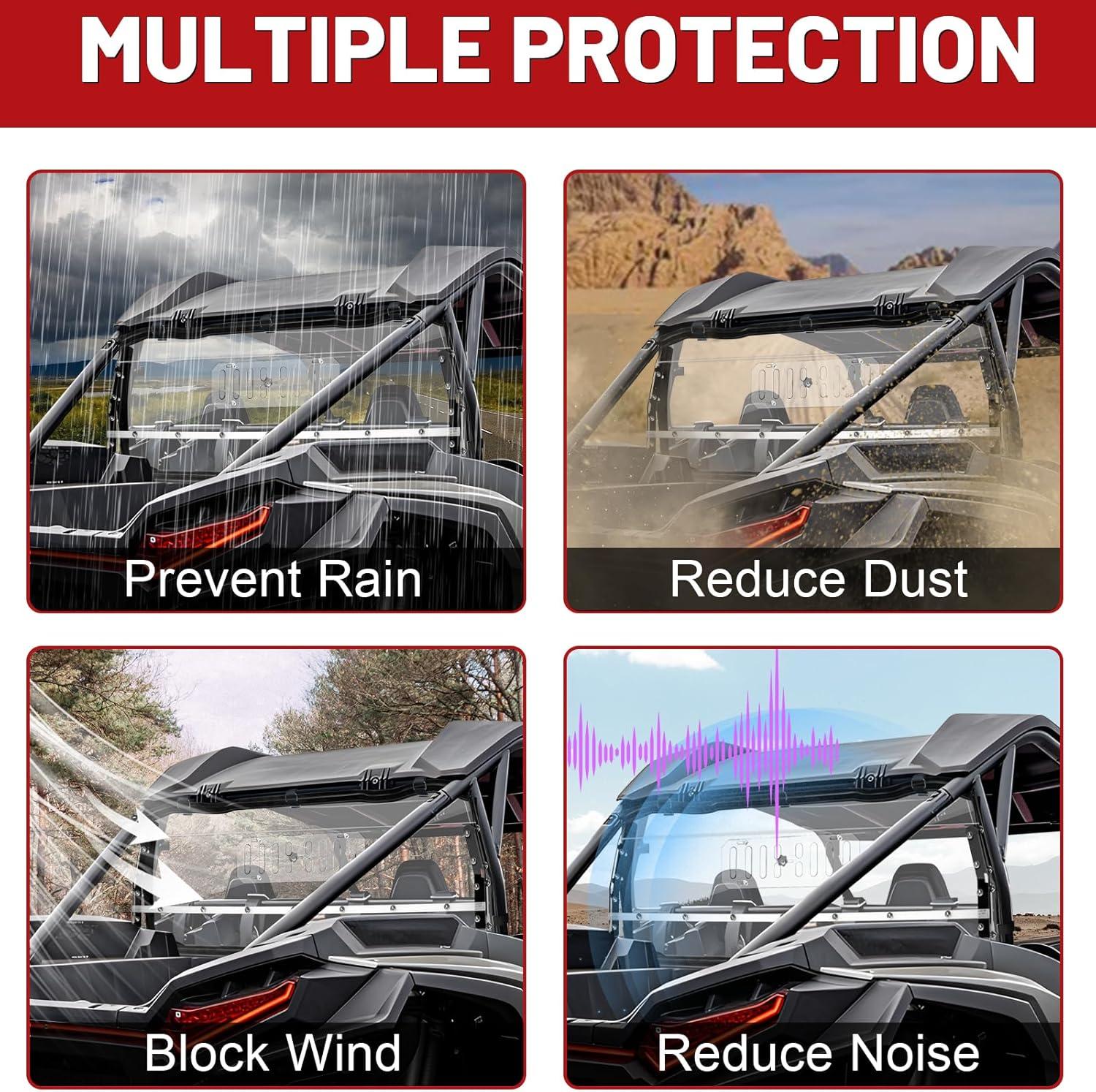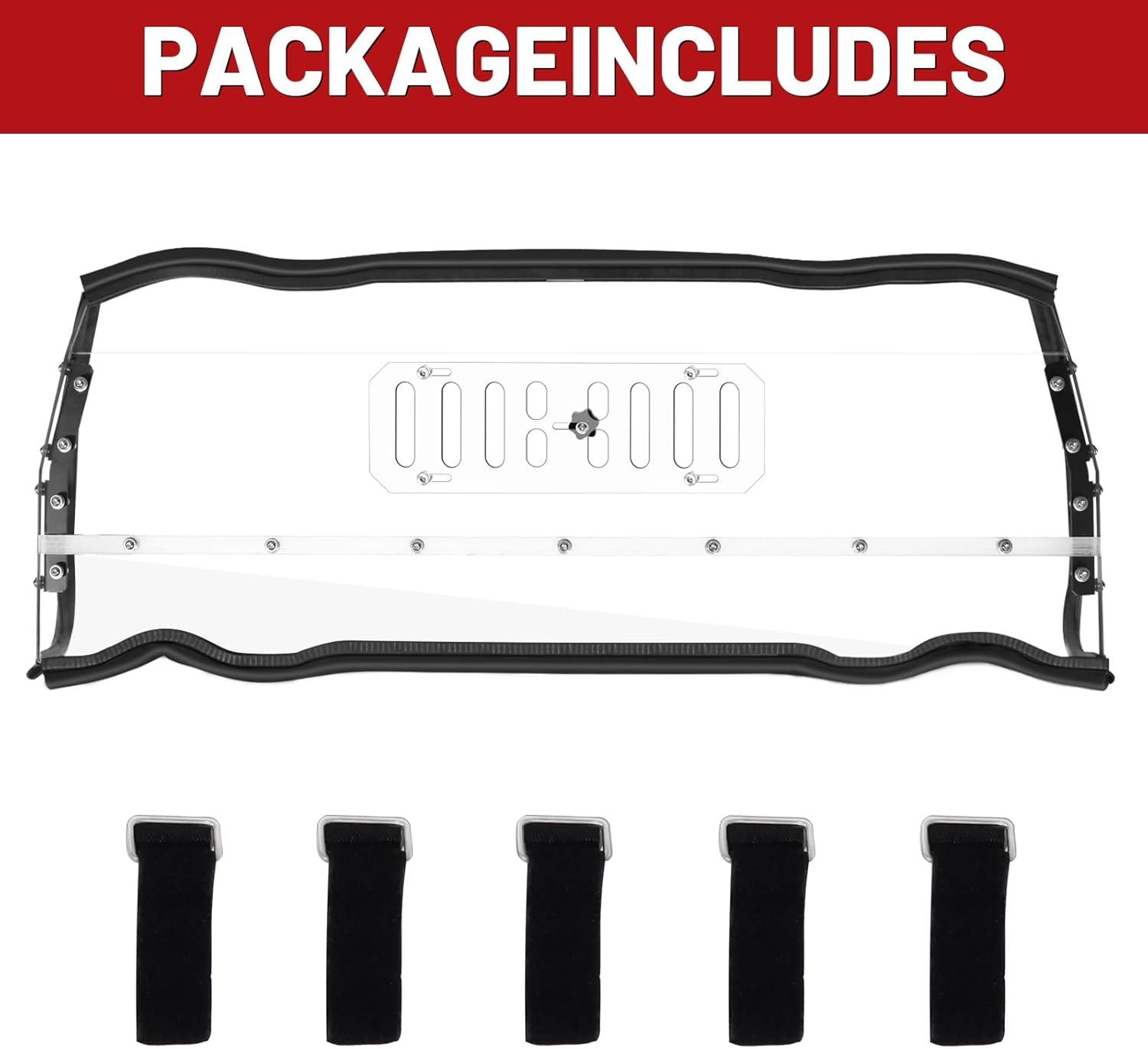 Fitment: The RZR XP 1000 Rear windshield is compatible with POLARIS RZR XP 1000 2024 and RZR XP 4 1000 2024; It fits soft and hard tops, Protecting your UTV cab from wind, sand, debris, snow, rain.etc. !!!NOTE: 1.DOES NOT MATCH THE CAR WITH REAR SPEAKER, 2.DOES NOT FIT RZR PRO MODELS