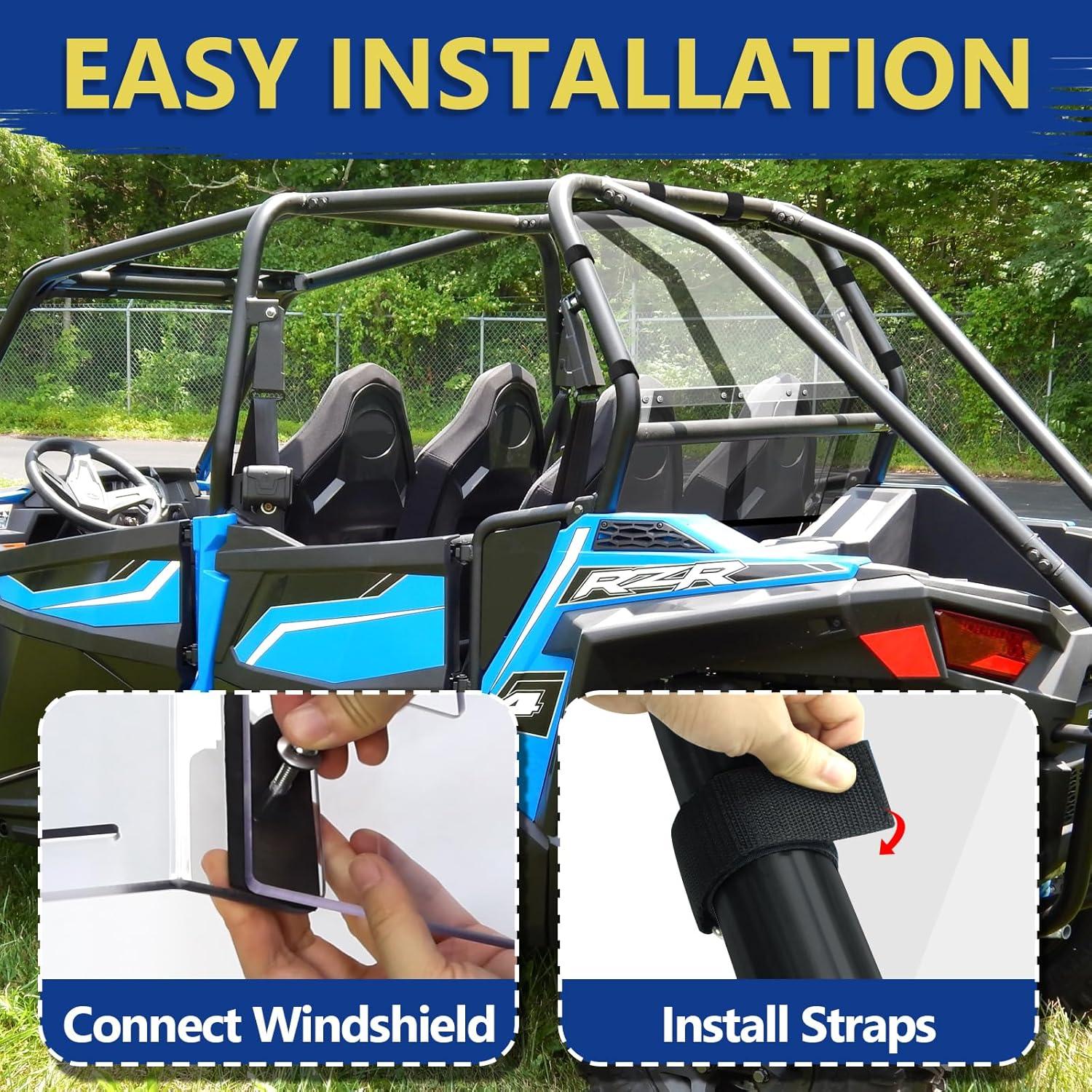 COMPATIBILITY: The rzr rear windshield is compatible with POLARIS rzr xp 1000/xp 4 1000 2014-2023 and rzr xp turbo/xp 4 turbo 2016-2022; It fits soft and hard tops, protecting your UTV cab from wind, sand, debris, snow, and rain and so on. NOTE: not compatible with rzr 800 900 or 1000 s series