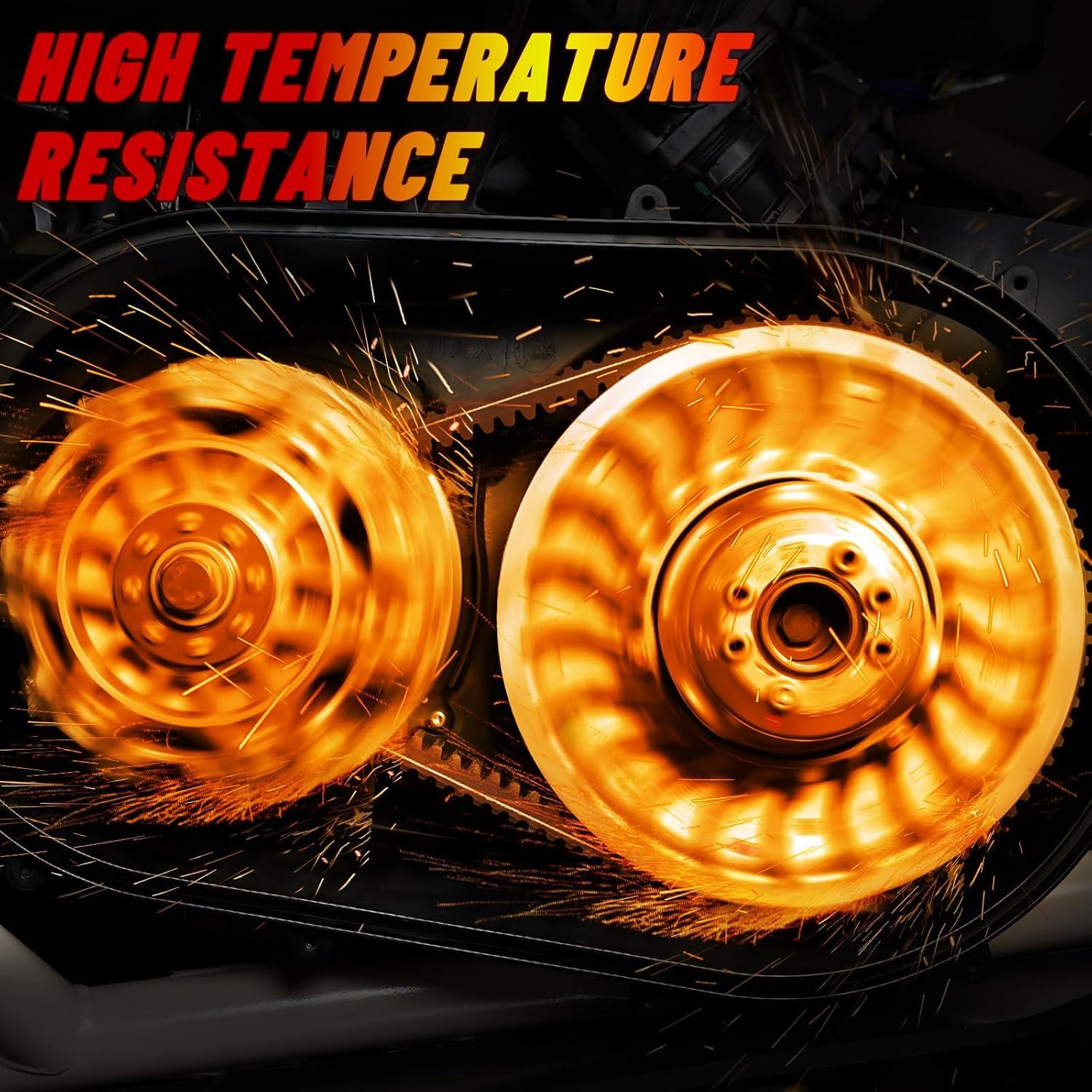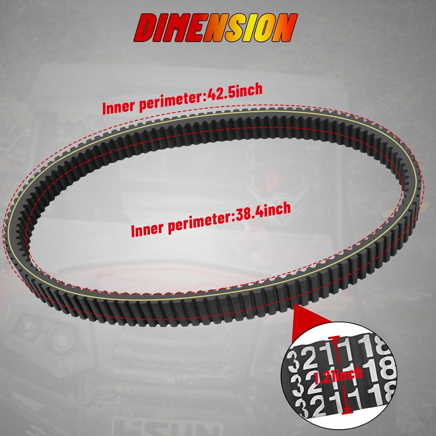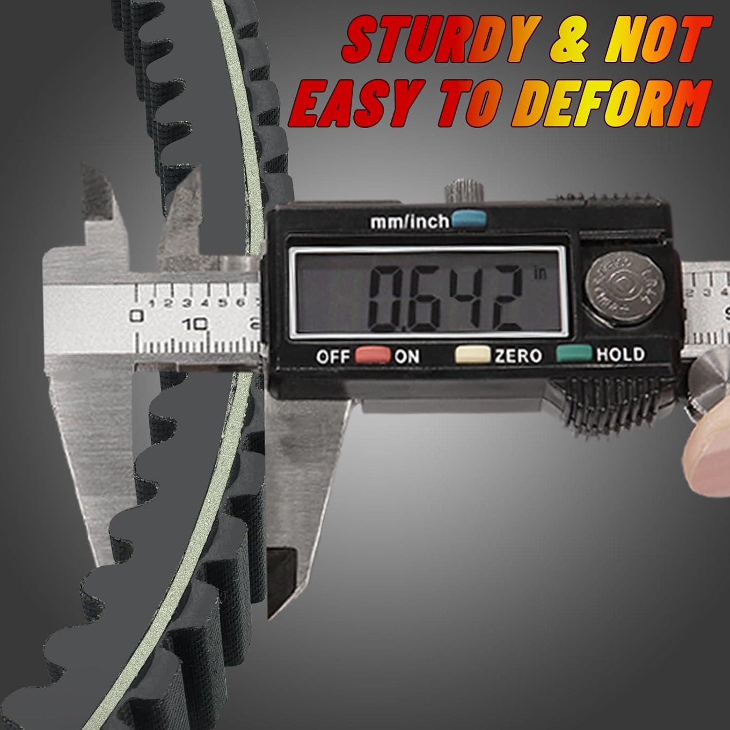 FOUR-LAYER THICK DESIGN: The rzr drive belt was wrapped with high durable nylon fabric on both tooth surfaces, which makes less noise and improves transmission efficiency; Mid layer is high strength chloroprene rubber; Aramid string cord plus another layer of rubber will prevent rapid breakage of the belt