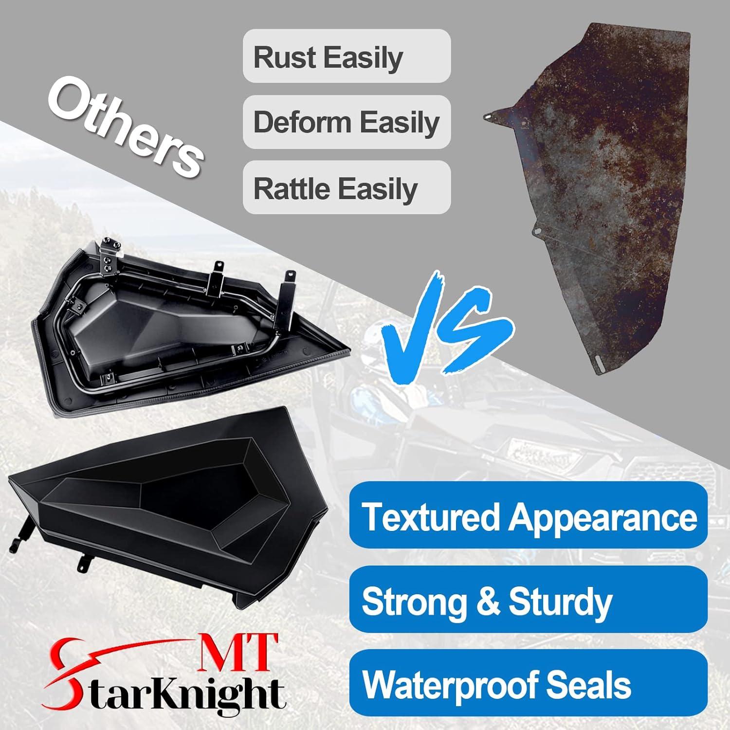 DURABLE MATERIAL: Made of high-quality PP plastic and aluminum with black powder-coated finish, these rzr doors is durable and perfect matches your RZR like the OEM style. The rzr lower doors also make your rzr body looks more complete