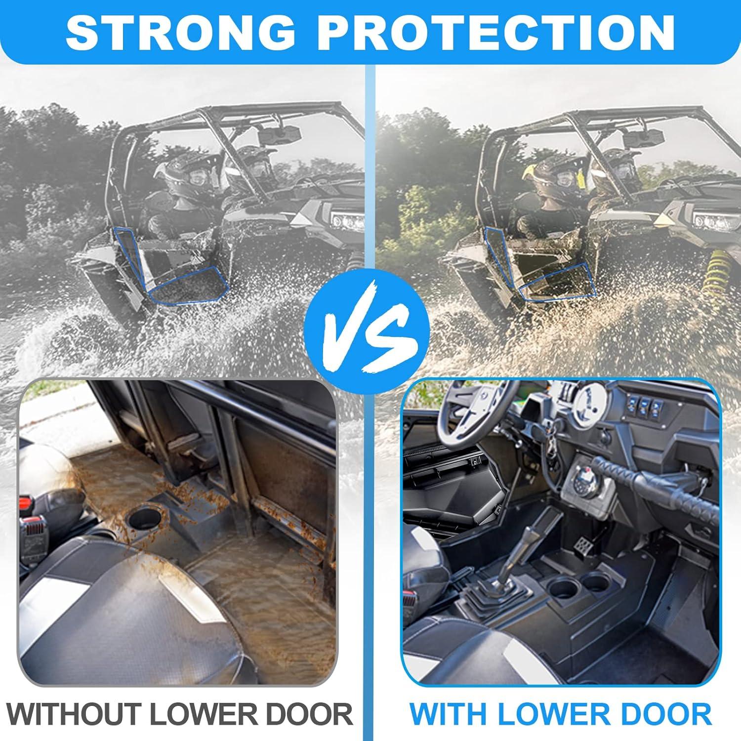 GREAT PROTECTION: RZR lower door panels can keep your interior much cleaner by blocking water, mud, debris, sand, and rocks into the cab; RZR doors with rubber seals not only seal the door edges and prevent rattle but offer strong protection for riders and passengers