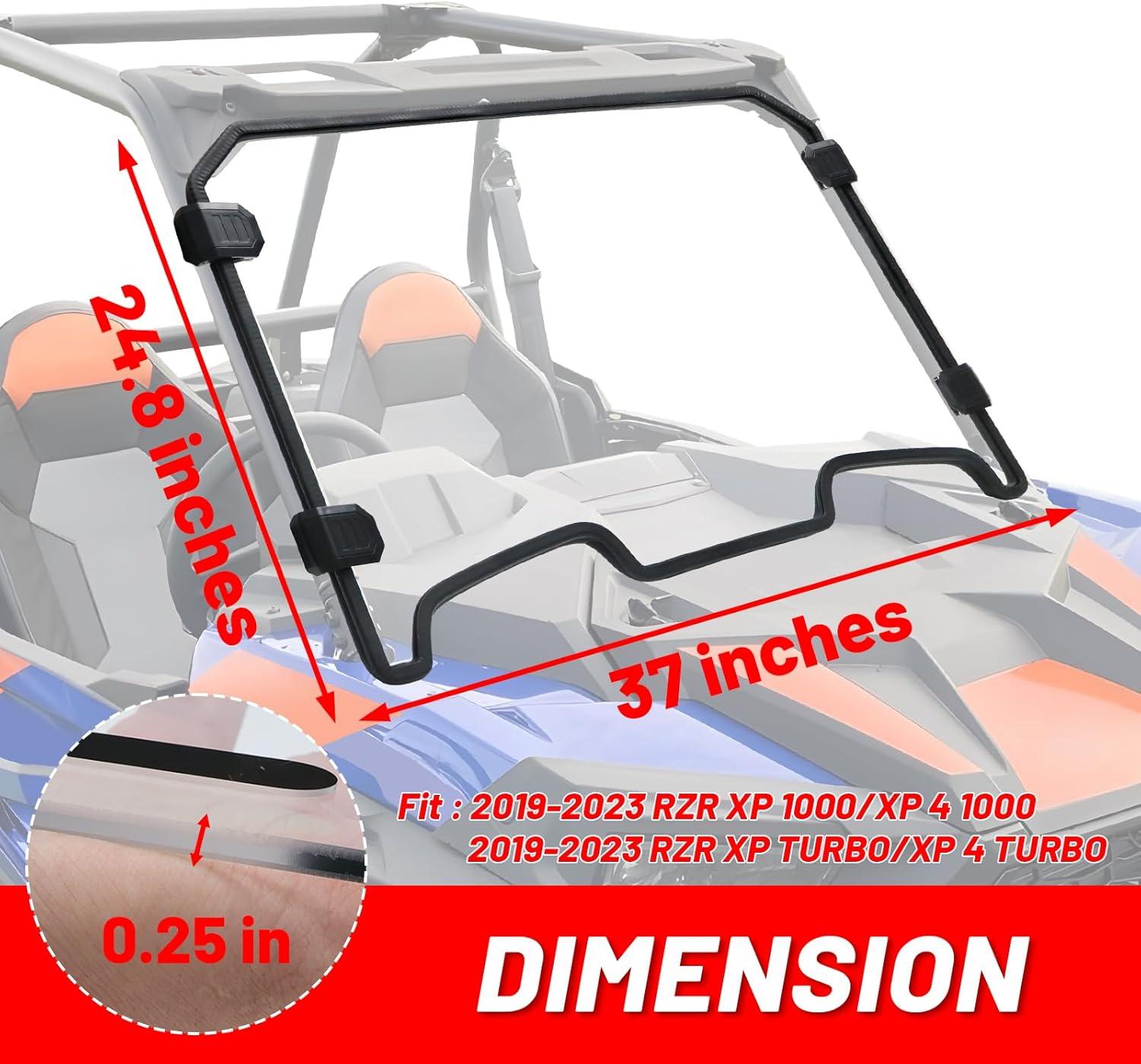 Compatibility: The RZR 1000 windshield is compatible with 2019-2023 RZR XP 1000 /XP 4 1000 and compatible with 2019-2021 RZR XP Turbo/XP 4 Turbo; Replacement of OEM 2884018, It fits soft and hard tops