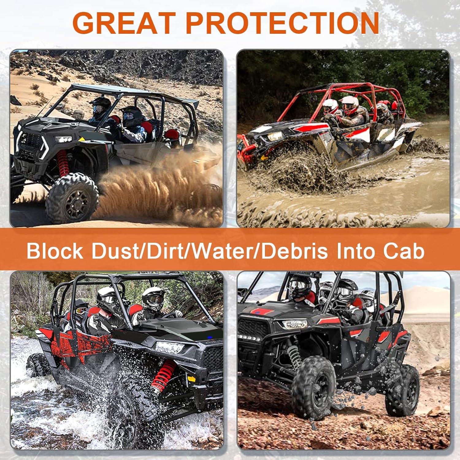 STRONG PROTECTION: Adding these RZR lower door inserts with a rubber seal, can not only keep your interior much cleaner by protecting from mud, dirt, water, and debris to get into the cab; Also the RZR 4 doors offer super strong protection for you and your passengers without adding excess weight to your ride