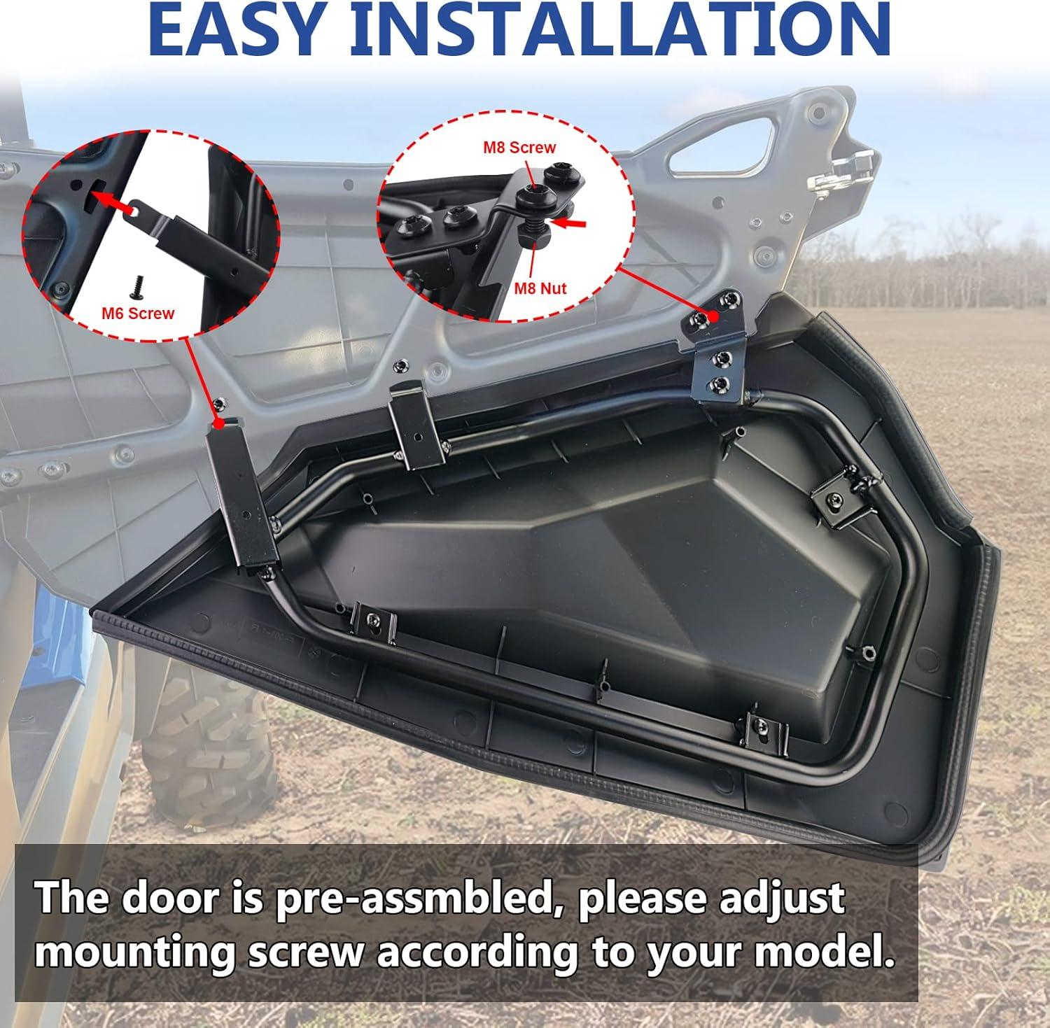 EASY INSTALLATION: The rzr doors is factory bolt-on,and no drilling needed; It also comes with instructions