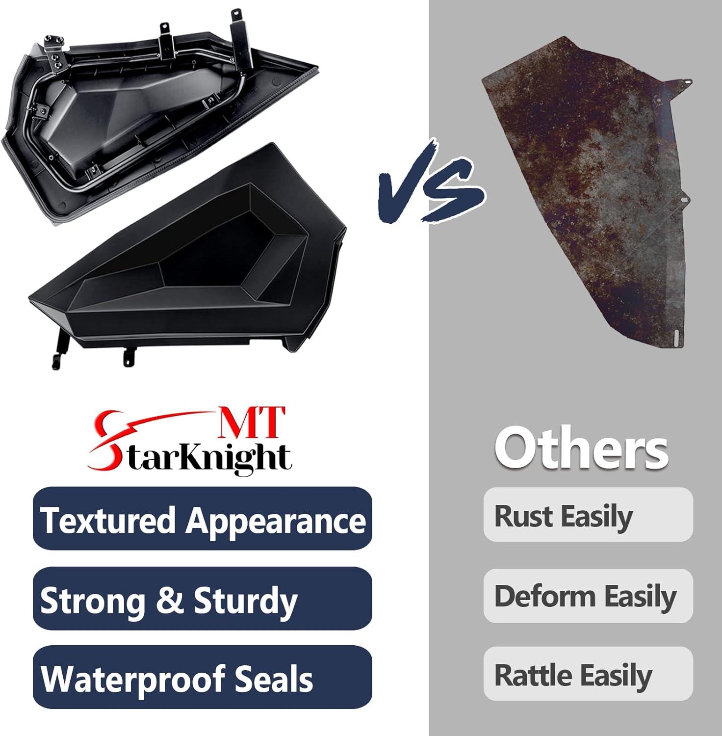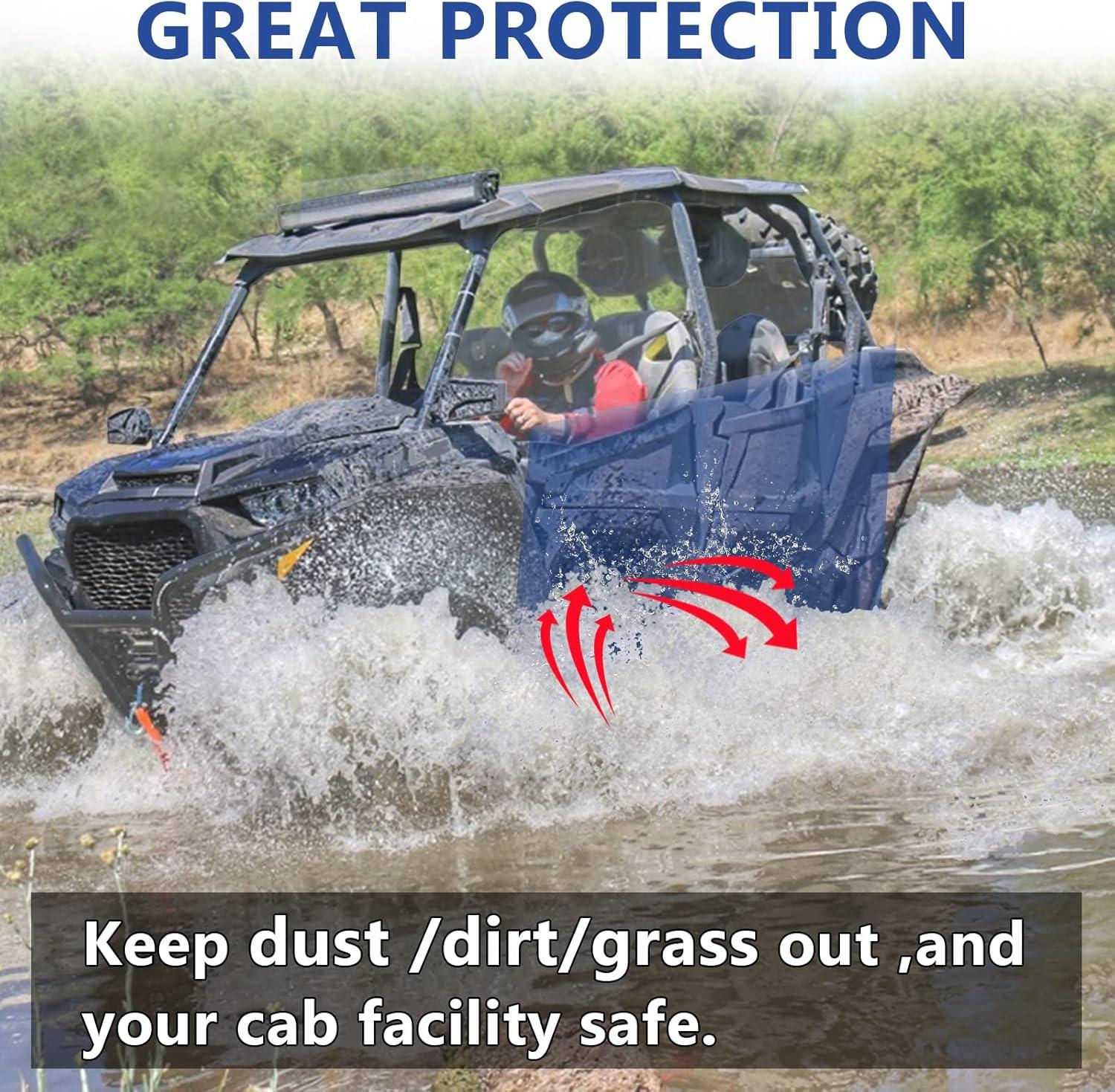 KEEP DIRT OUT YOUR RZR: The RZR lower door inserts will keep your interior much cleaner; The front lower door and the rear lower door has a bottom rubber seal, so it can seal effectively and reduce the 90% of dirt mud, dirt, water, and debris getting into the cab; These RZR doors add no excess weight to your ride while offering super strong protection for you and your passengers