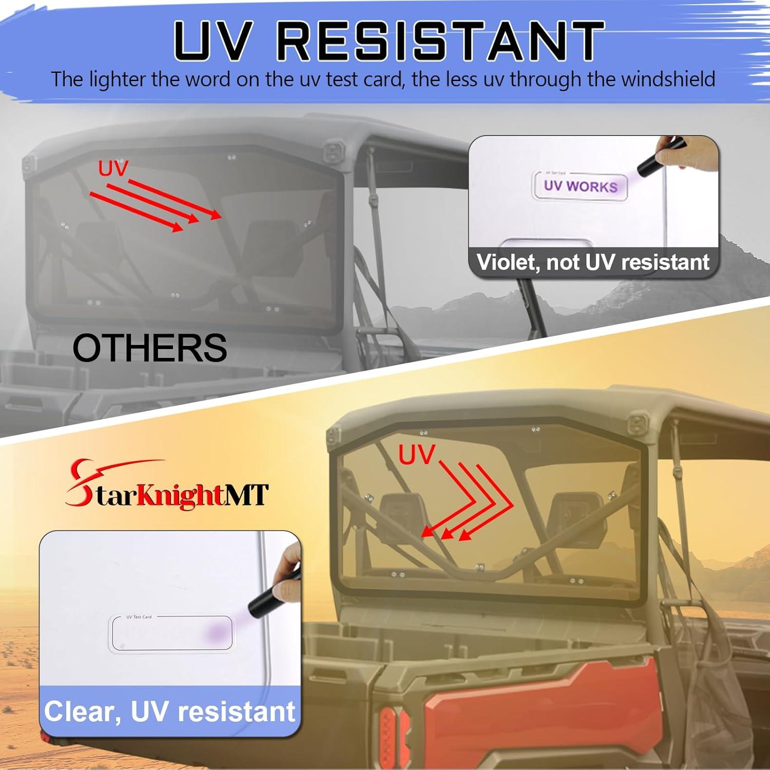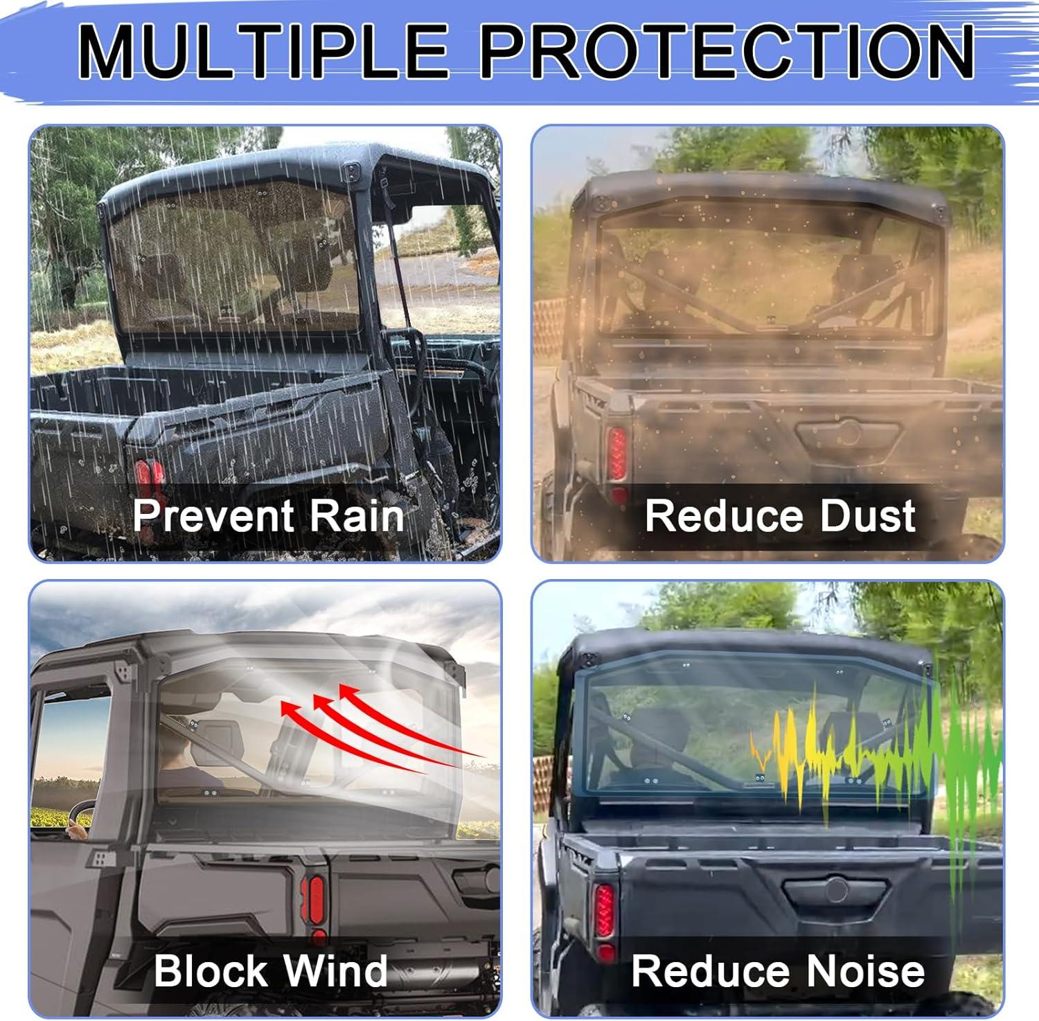 Fitment: StarknightMT Defender rear windshield is compatible with Can Am Defender HD 5/ HD 8 / HD 10 2016-2024 (Please see the product description for more models)