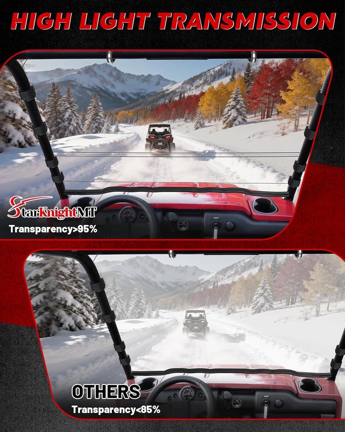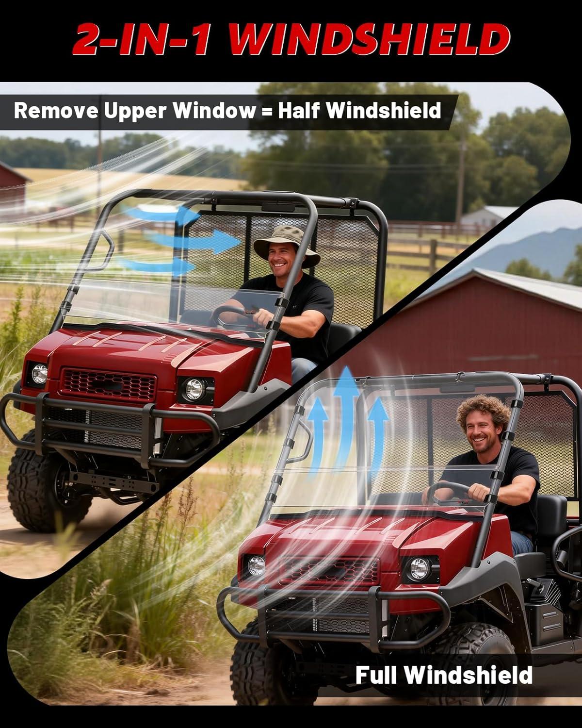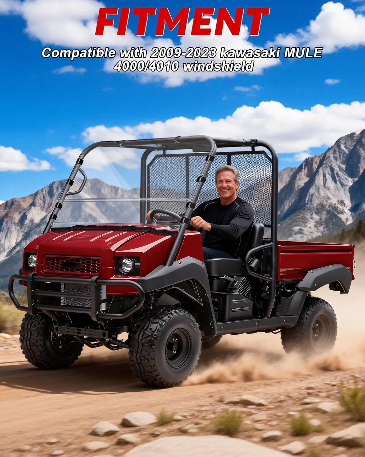 Compatibility: StarknightMT front full windshield is compatible with Kawasaki Mule 4000/4010 2009-2026. It integrates seamlessly with the factory frame to provide a professional, gap-free seal that eliminates annoying rattles