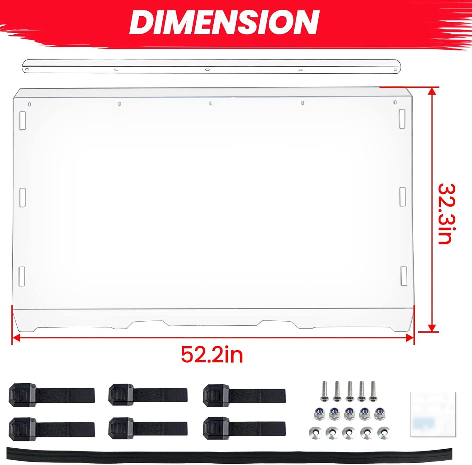 Easy Installation: The Ranger 800 front windshield comes with SIX self-adhesive clamps and an aluminum brace to keep it stable, and no need to drill the windshield; You can easily secure the windshield on your ranger using clamps; There is also an instruction included