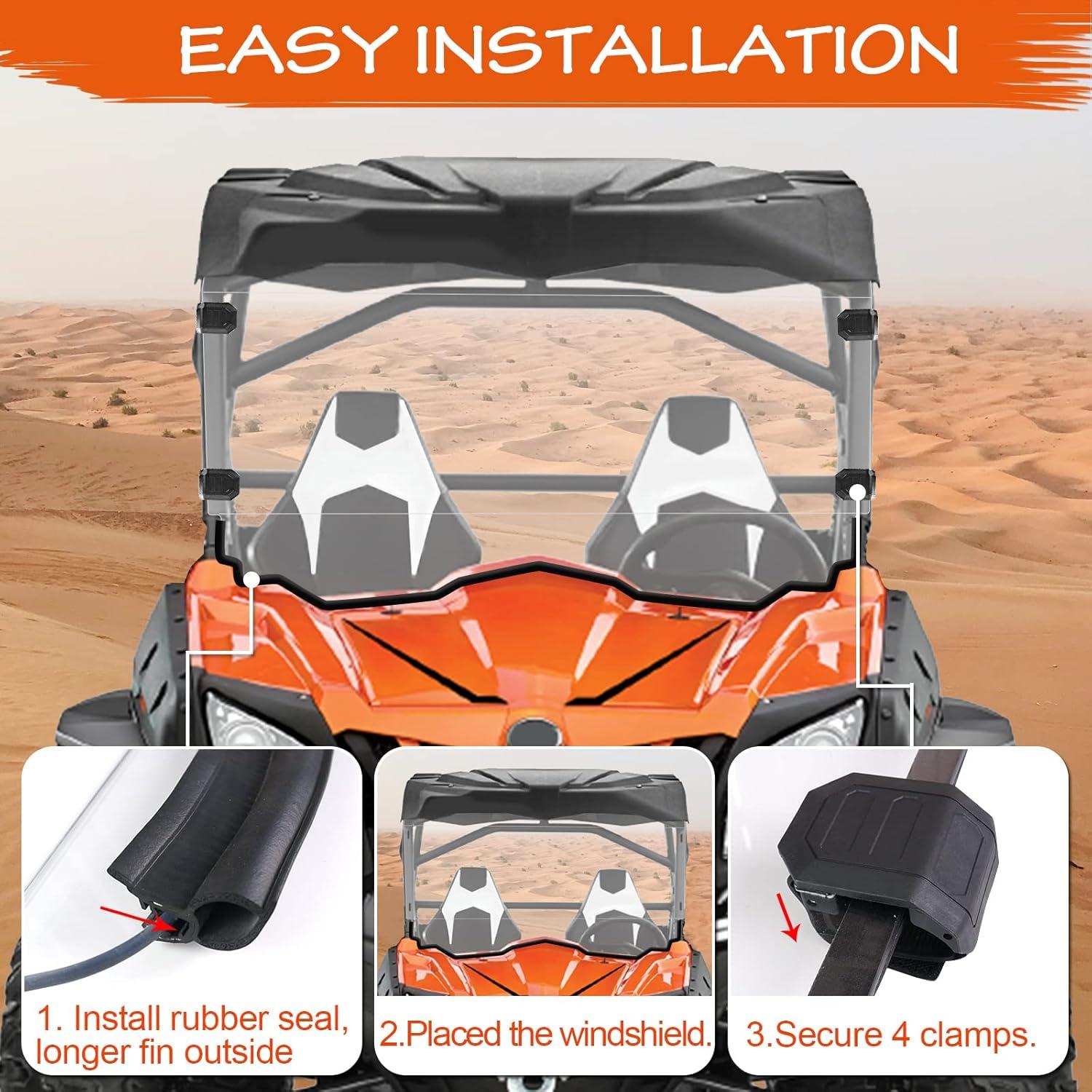 Easy Installation: The ZForce 800 windshield comes with 4 self-adhesive clamps, and no need to drill the windshield; You can easily secure the windshield on your ZForce using clamps; There is also an instruction included